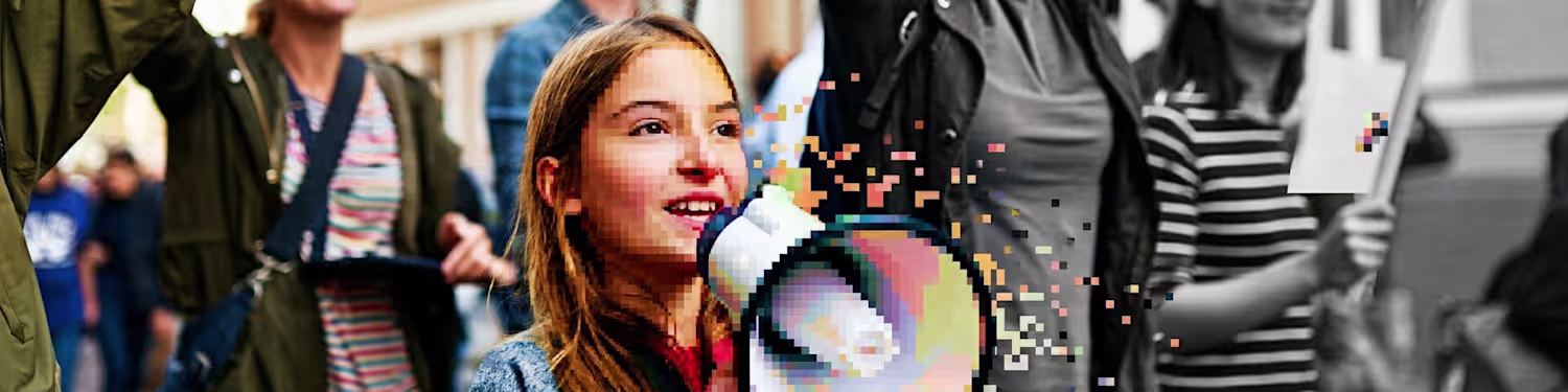 A face dissolving into noise — blue skin, closed eyes, graffiti-like marks tearing across the surface in copper and black. Identity under pressure. The image feels like a scream rendered in silence.