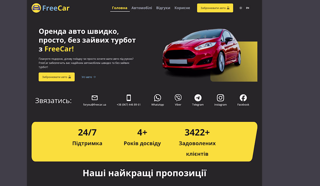 the website for car rental with a dual theme and multilingual. Technology: Nuxt, Postgres, Laravel
