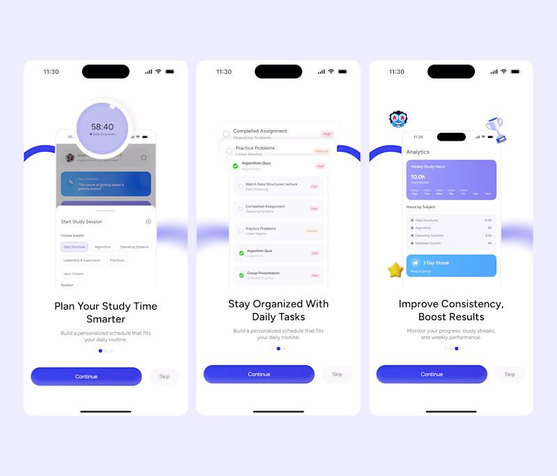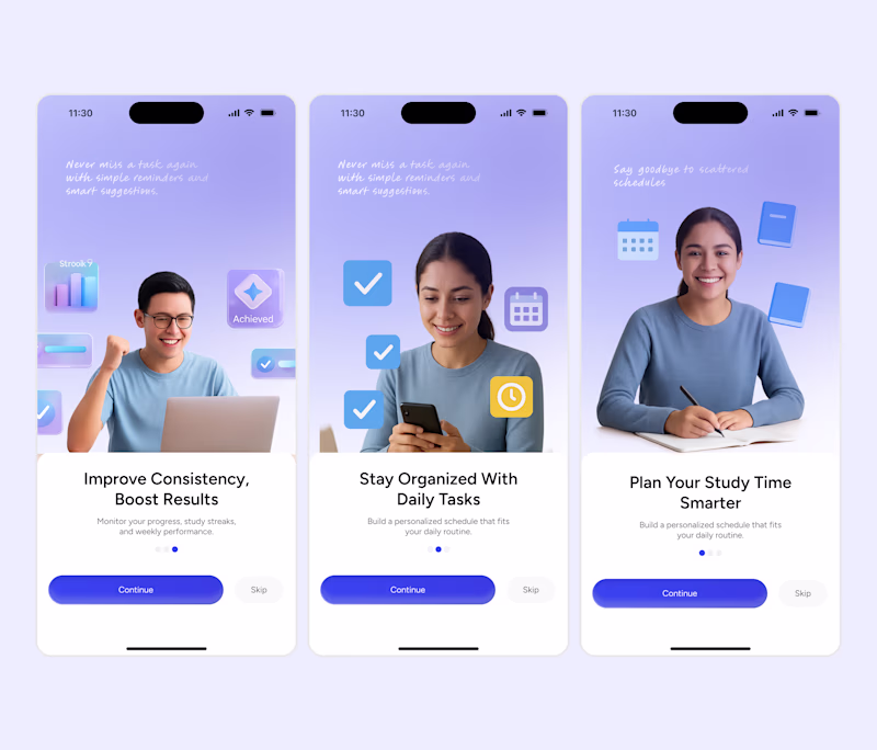 I just designed two different onboarding flows for a Study/Focus app.