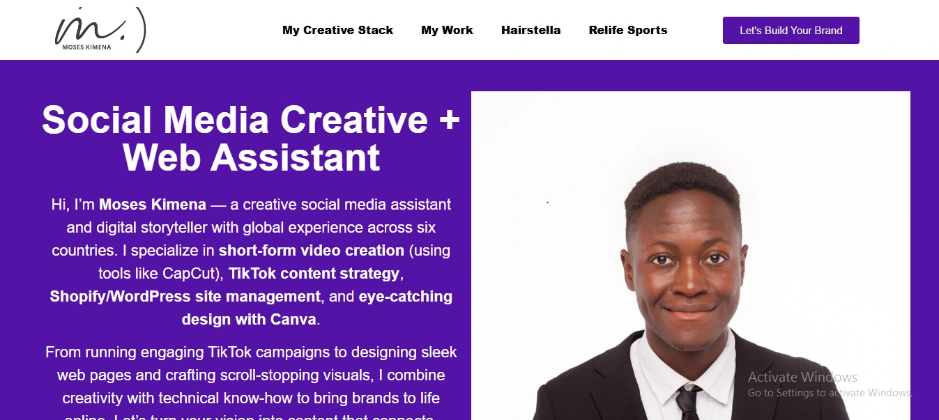 Built a personal landing page using wordpress to showcase my social media management skills