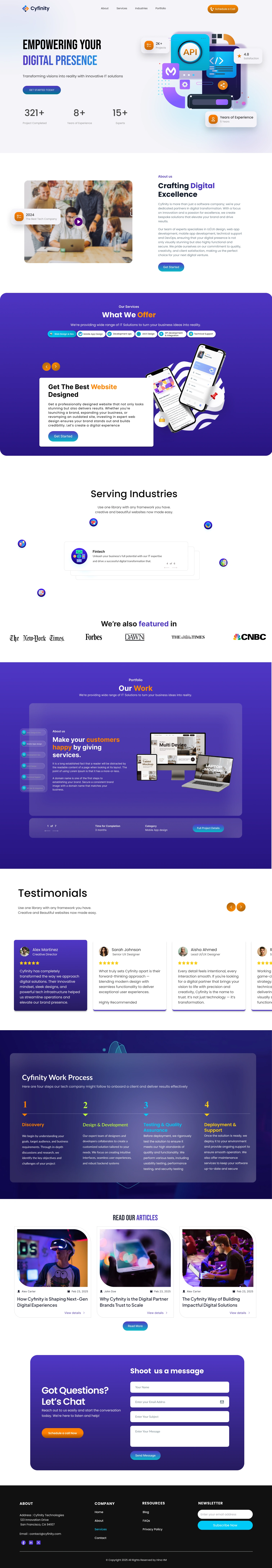 Goal: To design a sleek, modern, and high-converting website that positions Cyfinity as a premium digital solutions provider.