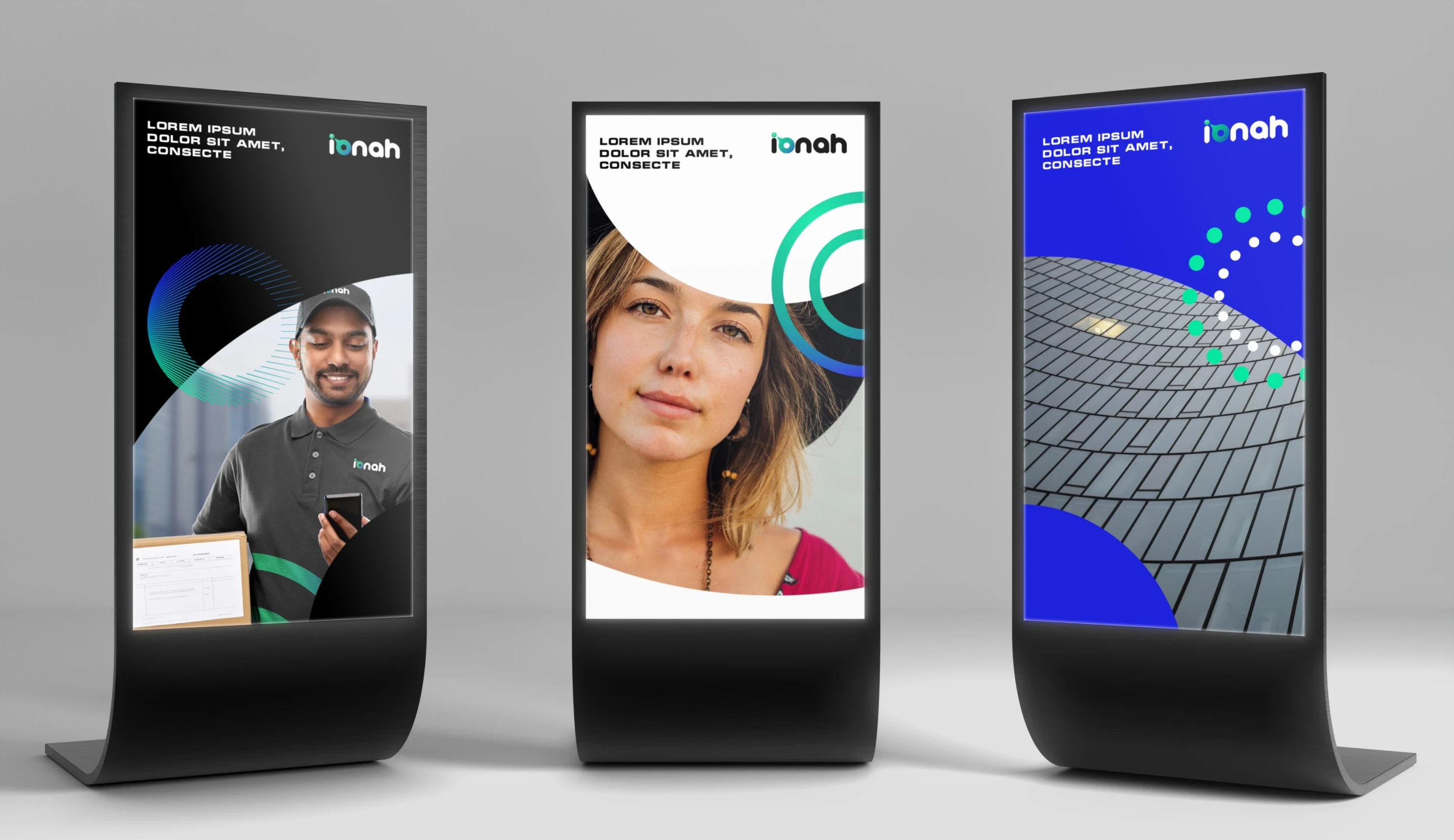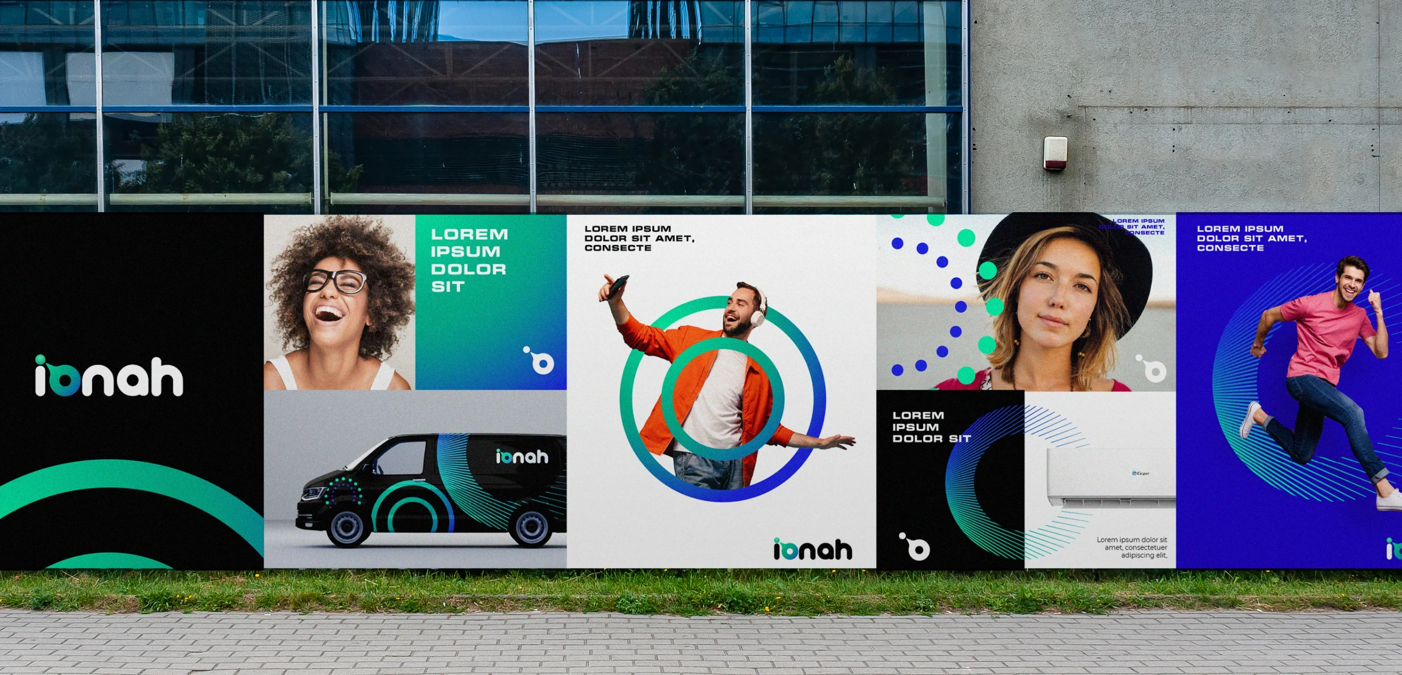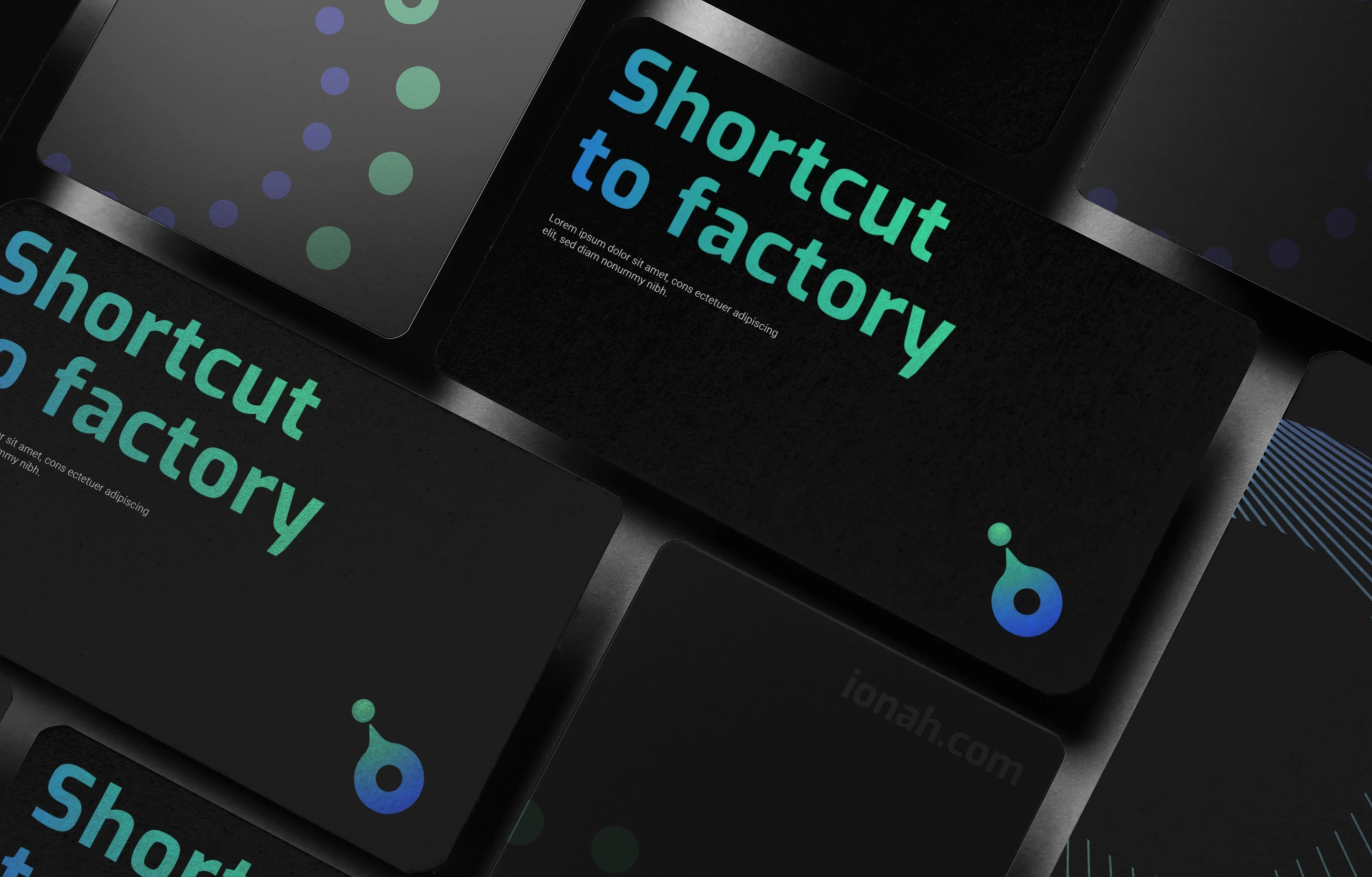 The logo is inspired by an atom image (with proton & neutron subatomic particles in the centre and electrons orbiting the nucleus). We also want to hint a radar image, taken from the 'real-time tracking' feature of the ionah ecommerce platform. We want to emphasise the use of AI technologies to optimise delivery speed, we make sure the look and feel of the brand is 'technology' and 'innovative'.