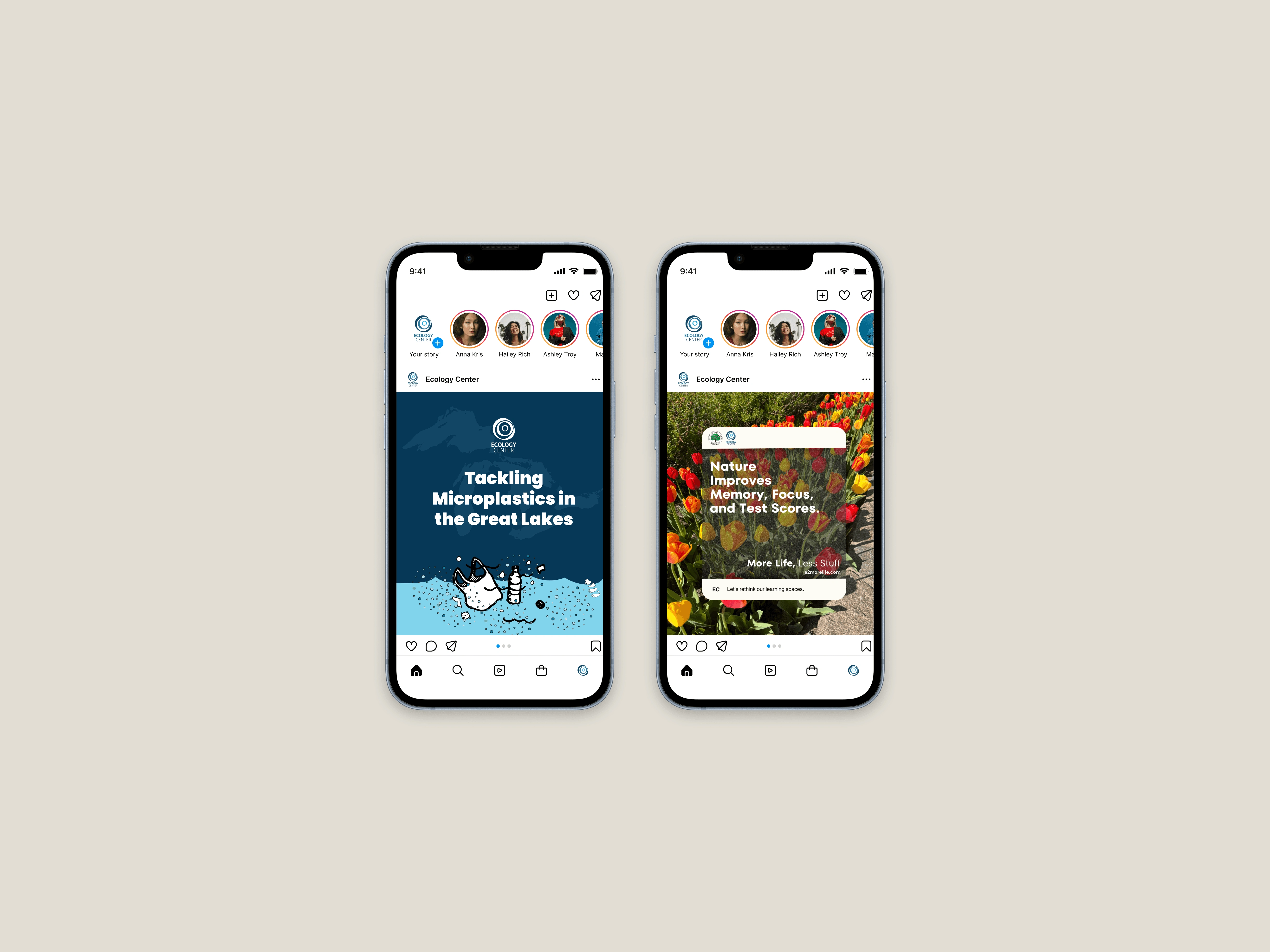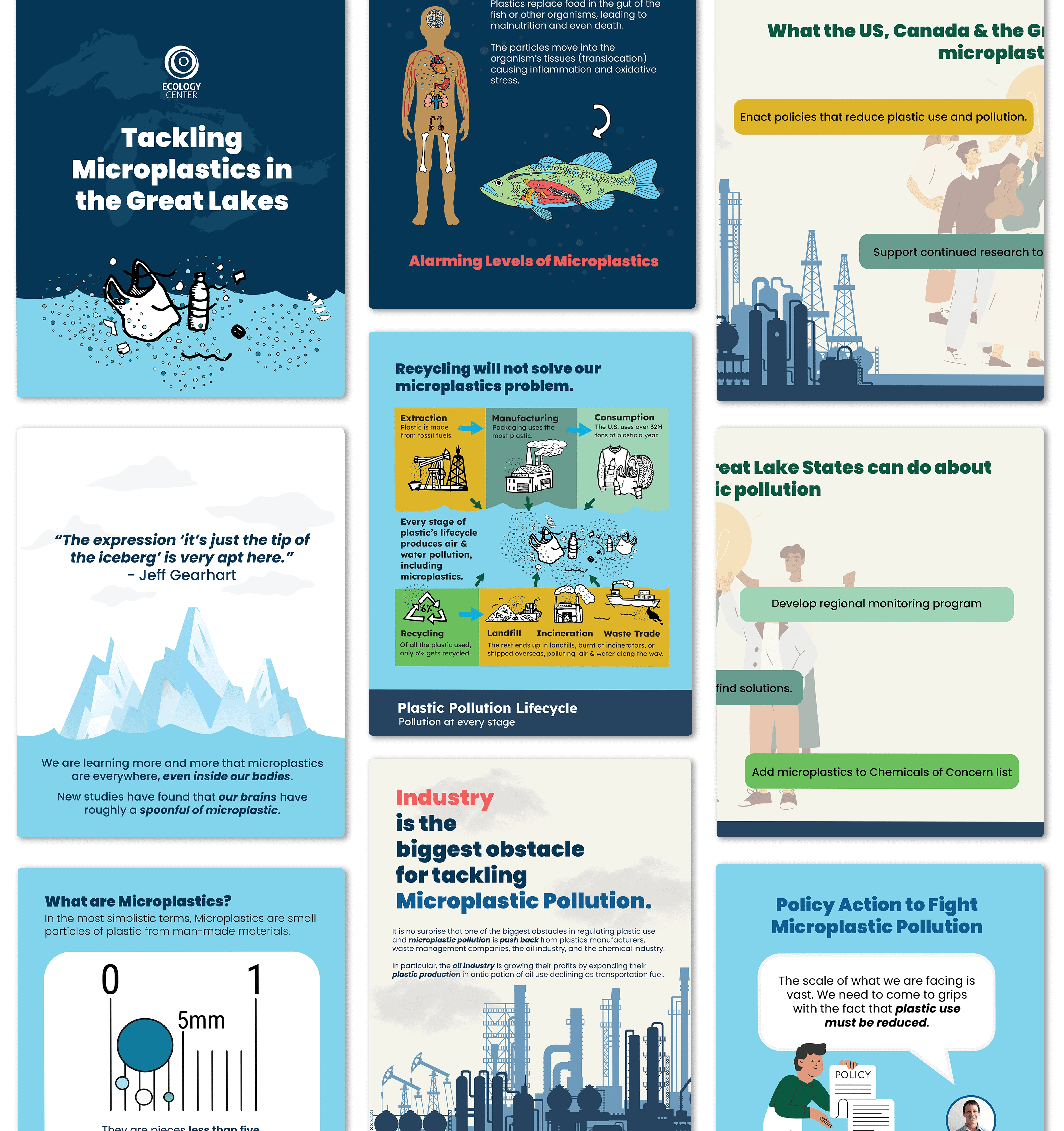 As a communications graphic designer with the Ecology Center, I supported a range of communication needs—from large-scale publications to quick-turn campaign assets. My work spanned multiple 40-page annual reports, digital ads, infographics, and the More Life, Less Stuff campaign, created in partnership with the City of Ann Arbor.