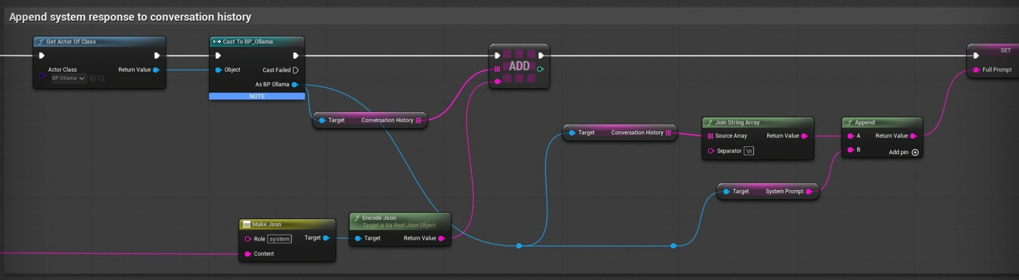 The blueprint shown above was on a widget UI element, the UI itself was designed to replicate what one would typically see when chatting with an LLM like chatGPT.