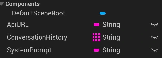 Step 1 is to create a separate BP_Ollama where we can store and change all these variables, so that any changes we want to make further into development can be made more easily by simply accessing BP_Ollama.