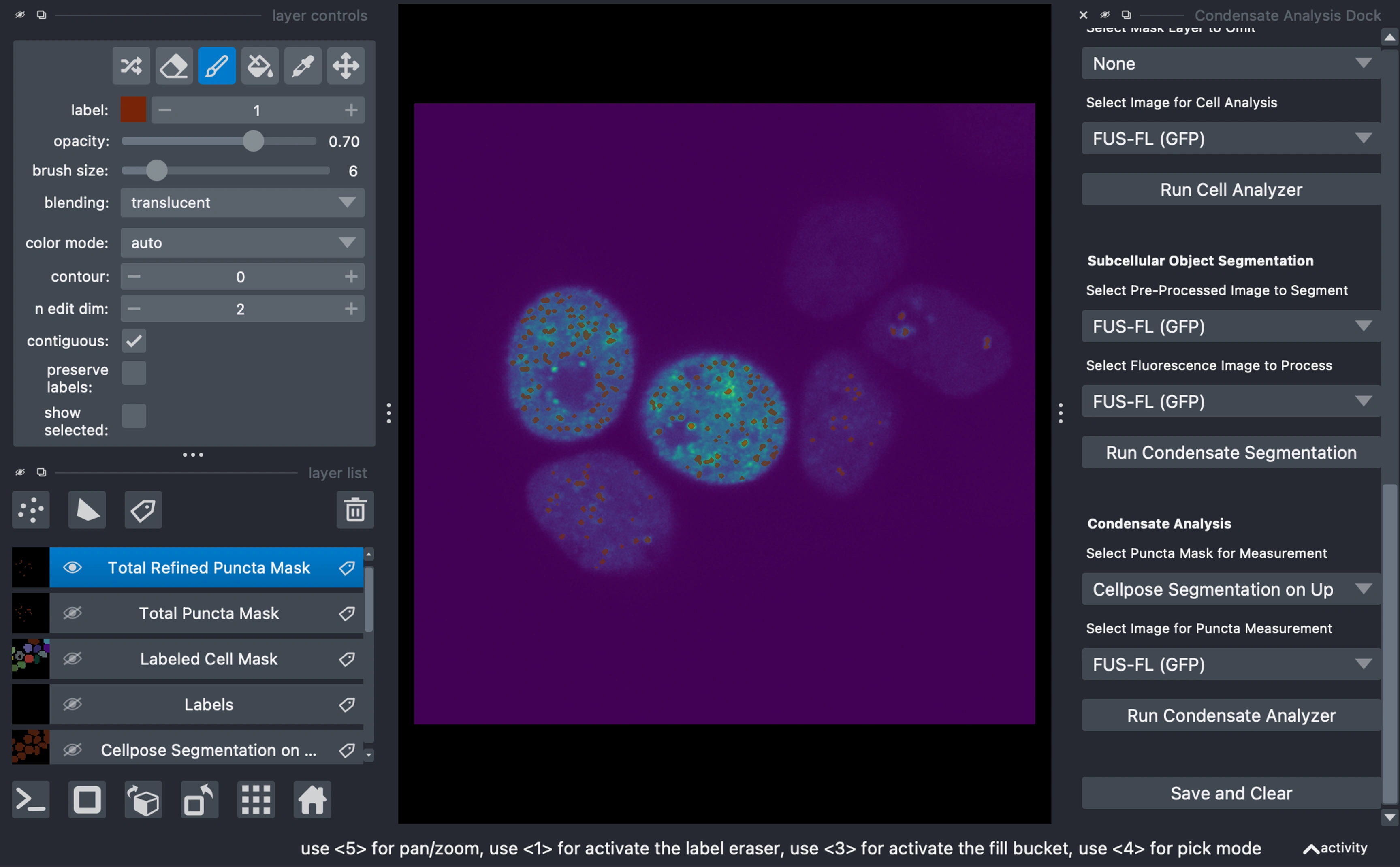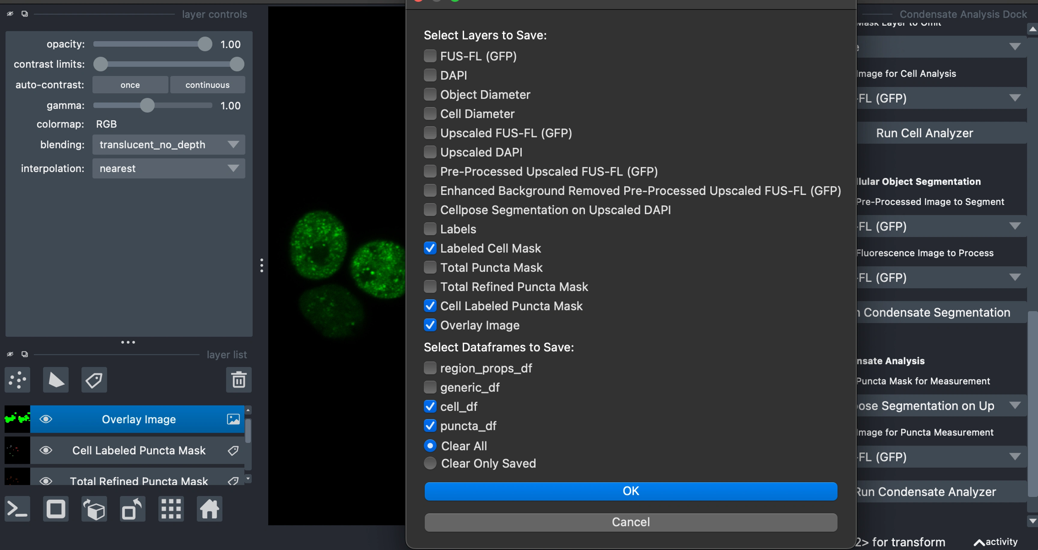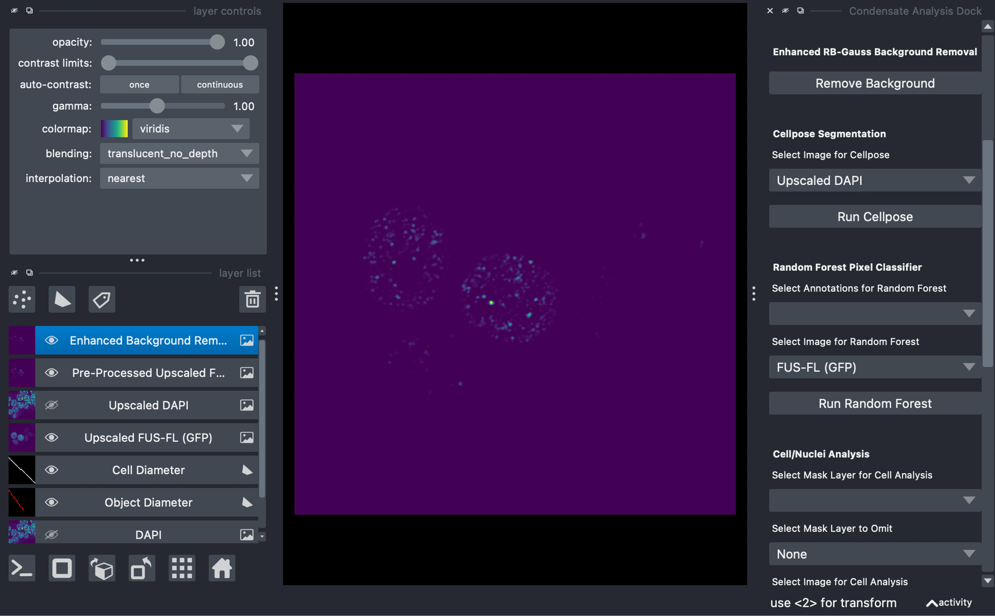 Developed PyCAT-Napari (Python Condensate Analysis Toolbox) for biomolecular condensate analysis in biological images.