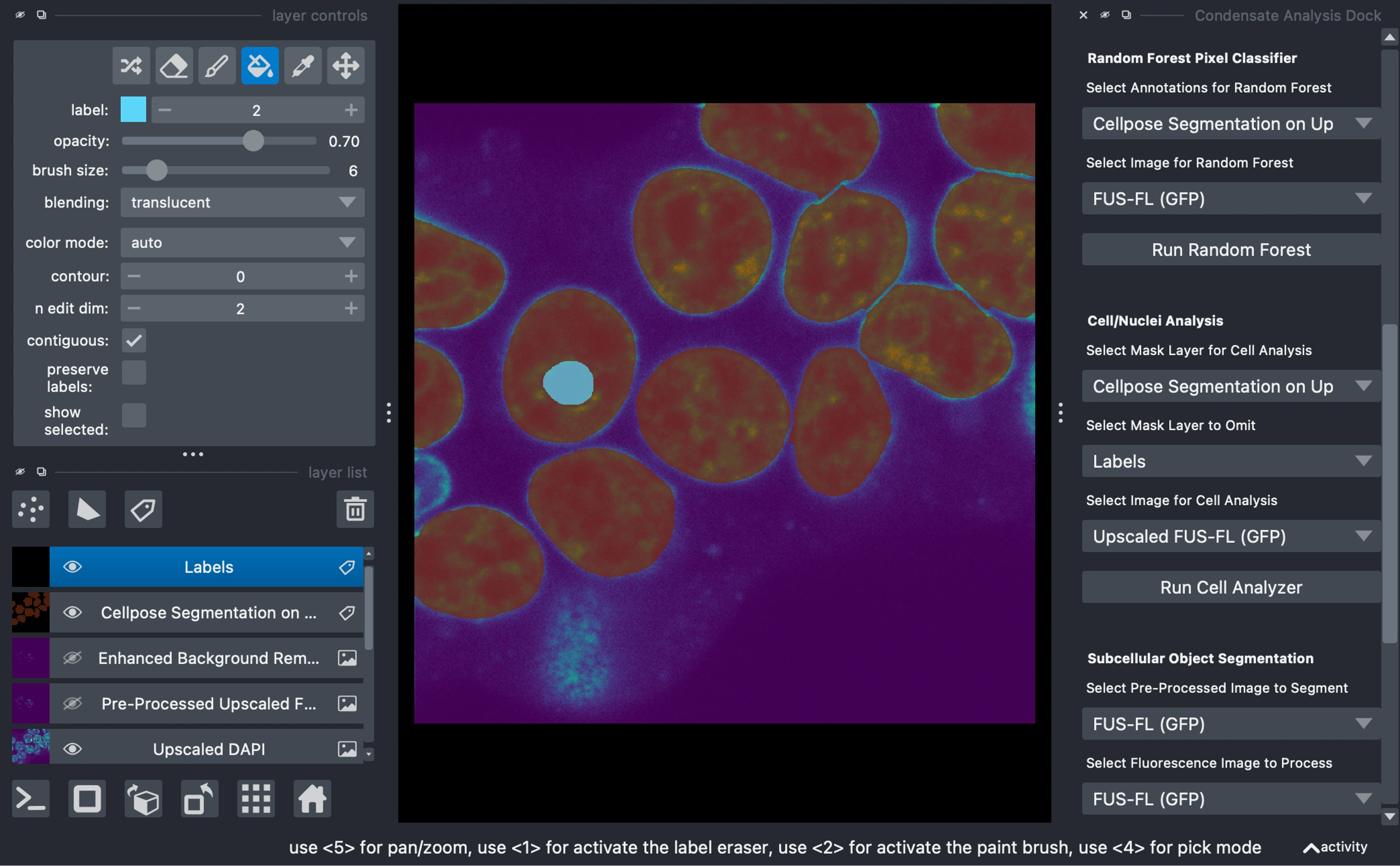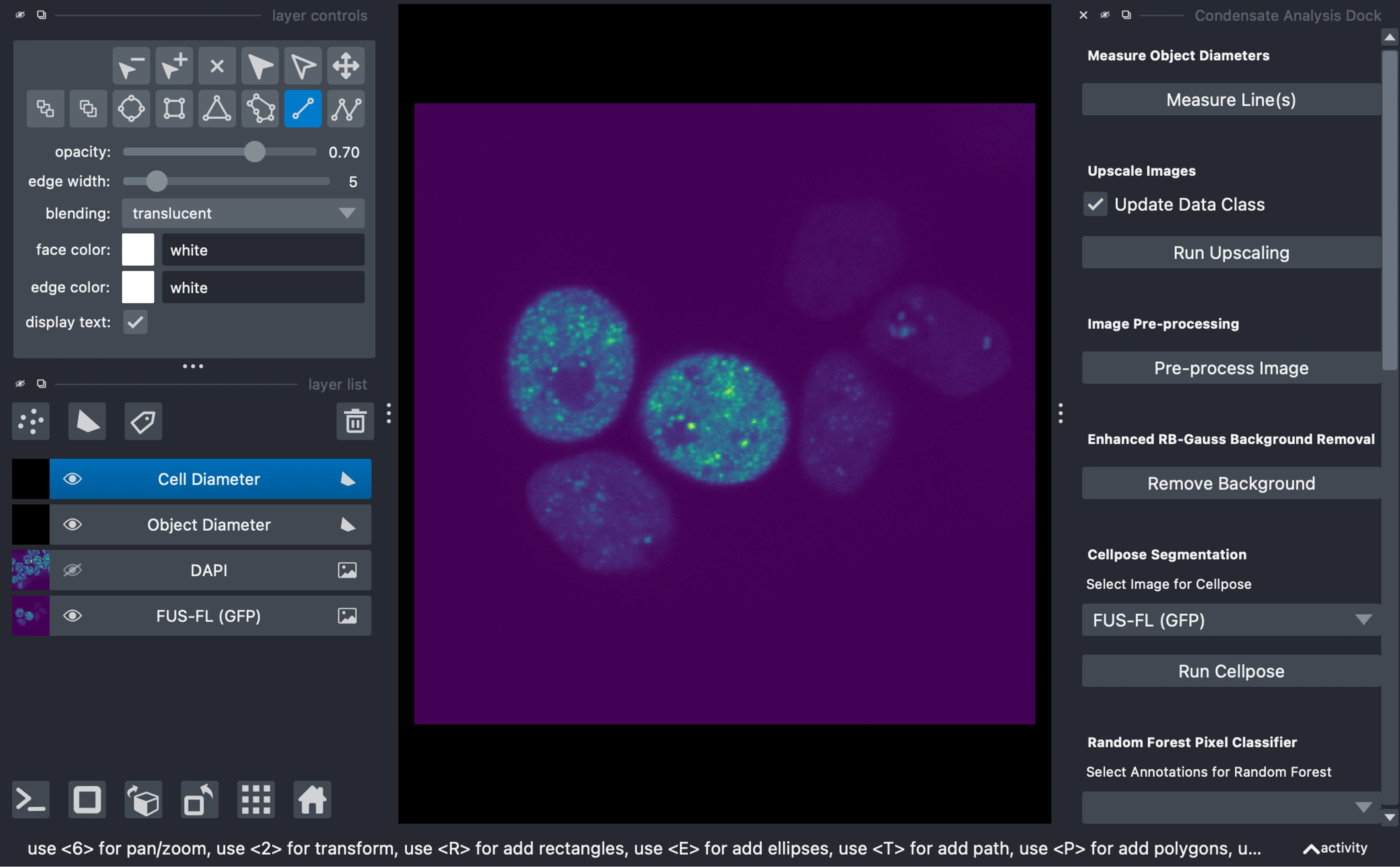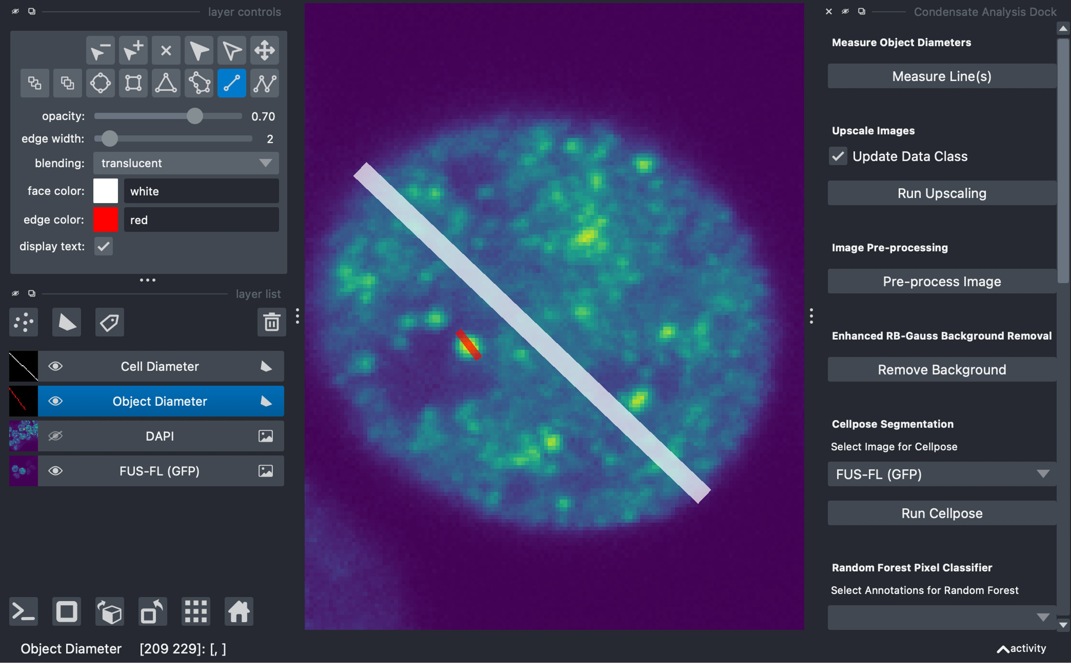 Developed PyCAT-Napari (Python Condensate Analysis Toolbox) for biomolecular condensate analysis in biological images.