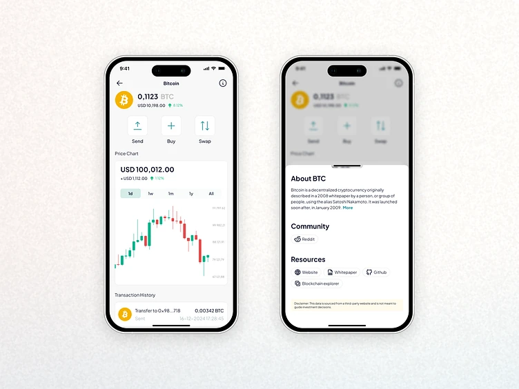 To check price changes directly, I've added a price chart along with details about the coin and relevant links. These features are essential for determining the legitimacy of a coin while also providing users with easy access to important resources like whitepapers and community links. This approach aligns with the goal of showcasing the wallet's ease of use and simplicity, ensuring users can stay informed about price trends and other critical information effortlessly.