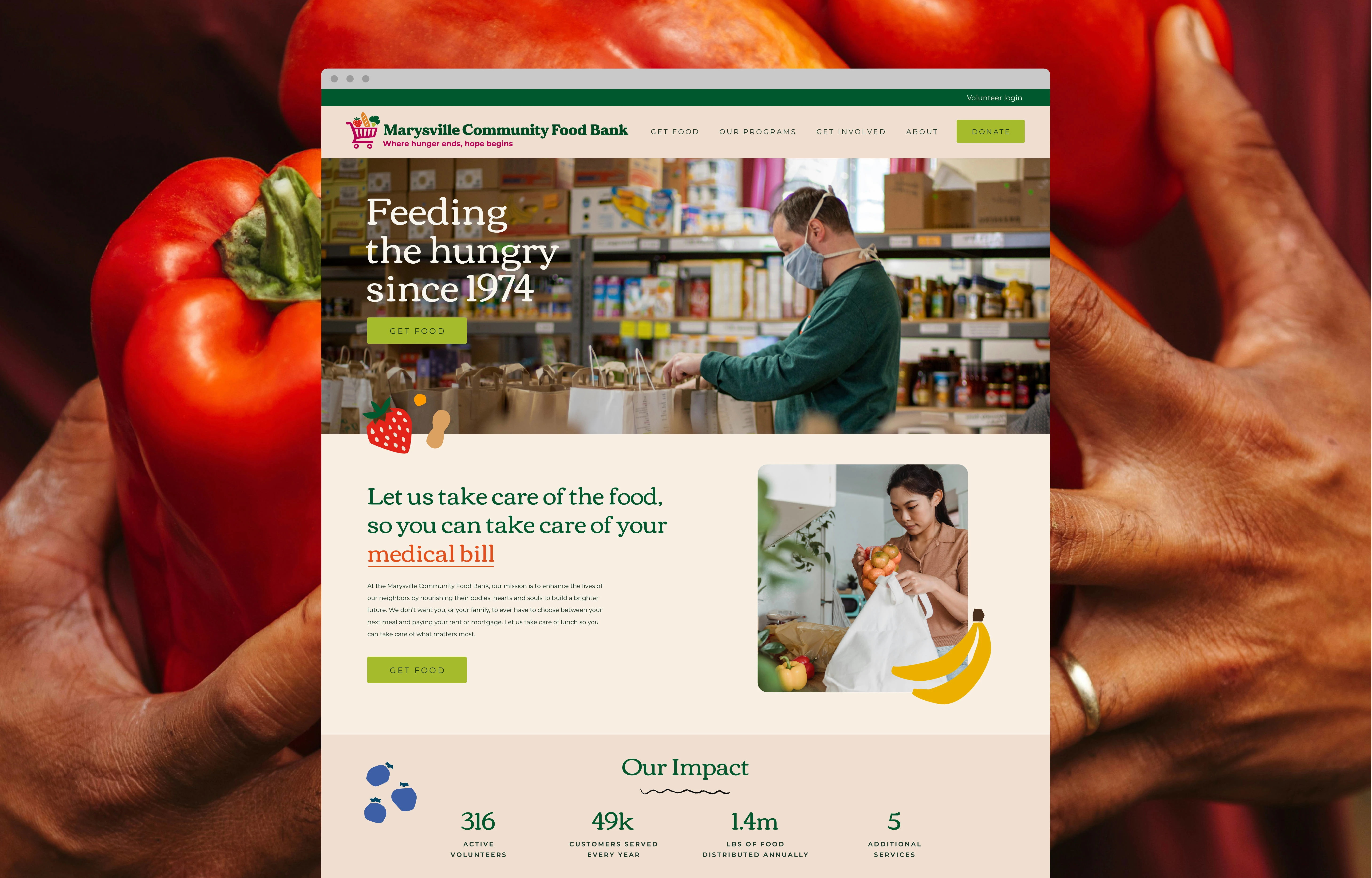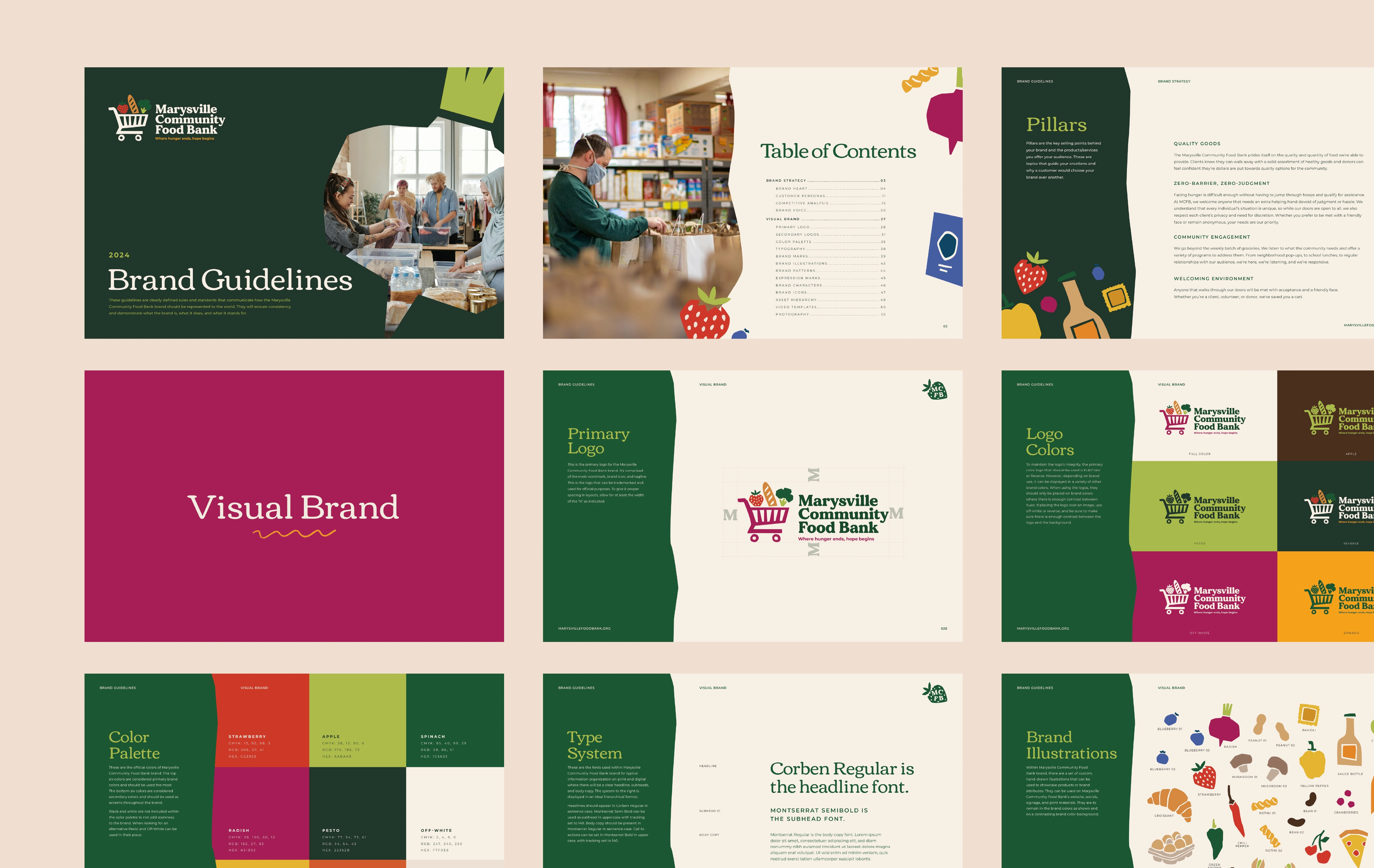 Crucially, MCFB needed a brand that felt real and grounded, one that acknowledged their scrappy, grassroots history and the reality of food insecurity without feeling corporate or polished beyond recognition. They requested a visual direction that was quirky but timeless, fun but respectful, and clear without being clinical.