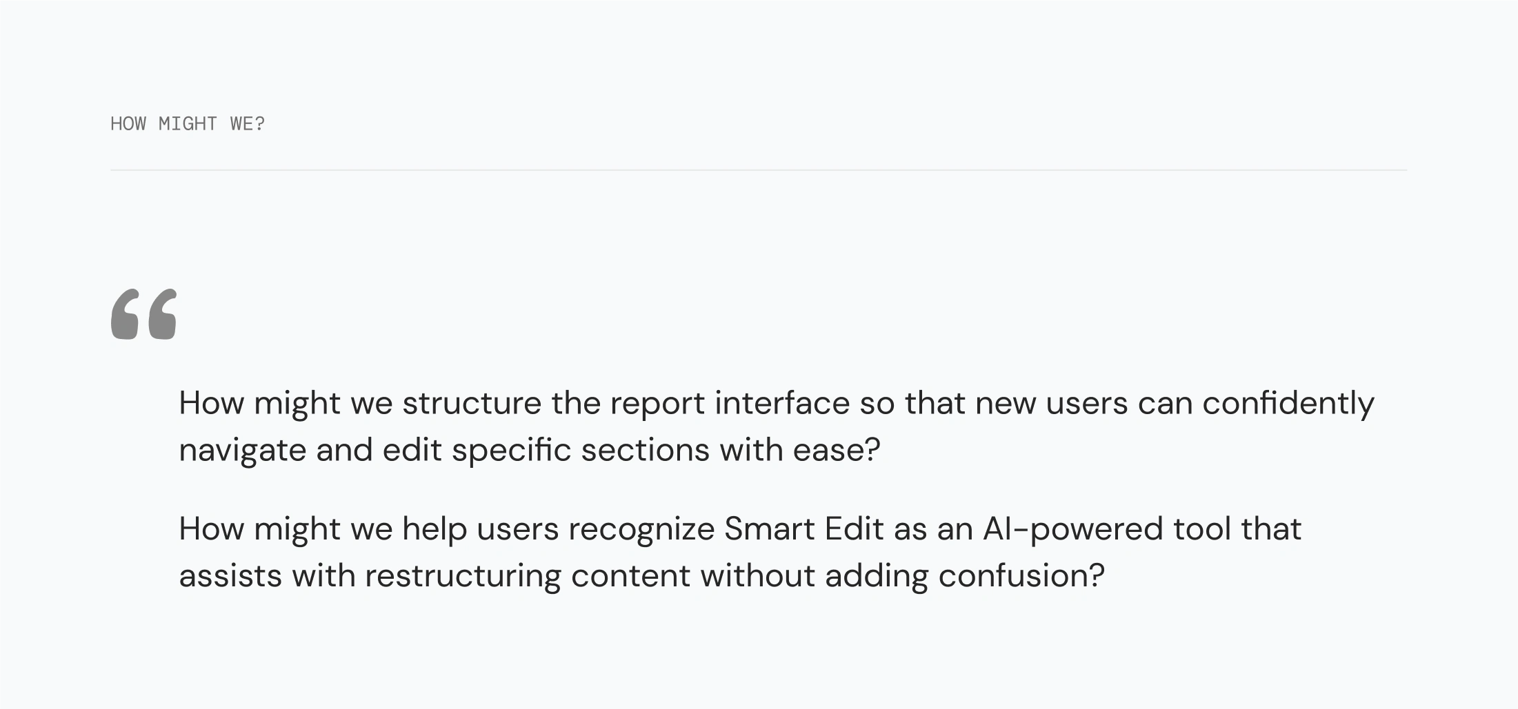 I also framed our approach with “How Might We” statements to guide my design decisions