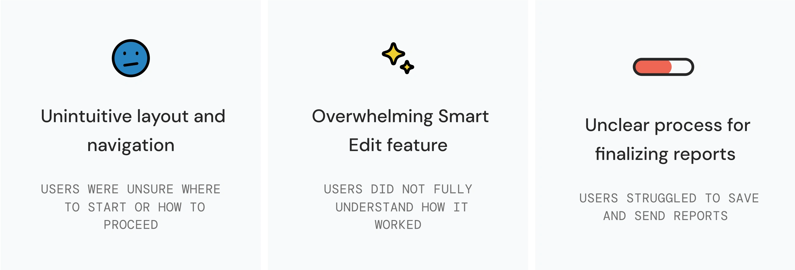 We discovered recurring usability issues that impacted user confidence and onboarding: