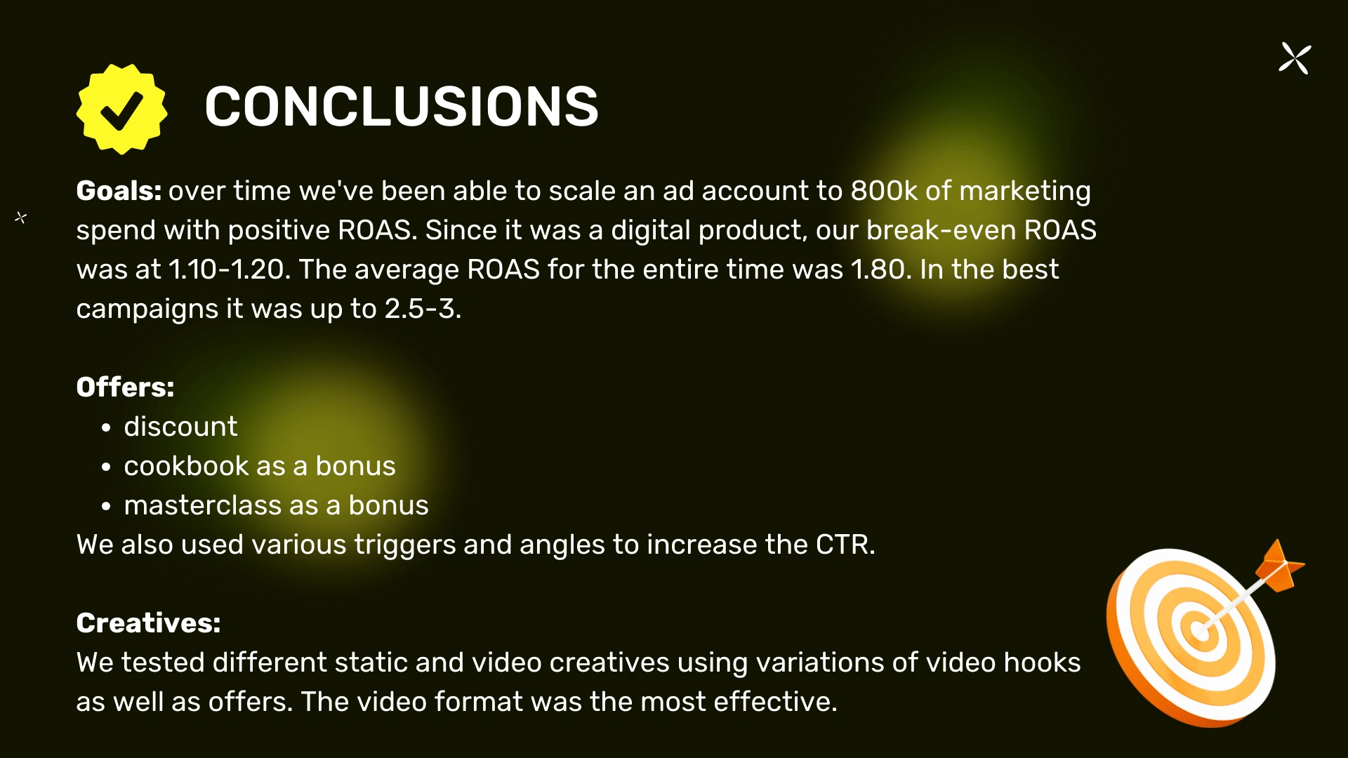 A very interesting project that I'm still working with today. Deli Devi are selling Plant Based Cheese Library with 42 recipes. Thanks to an effective advertising strategy, working with all audience segments TOF, MOF and BOF as well as cool video ads, we were able to achieve $800k in ad spend and make the Facebook campaigns profitable.