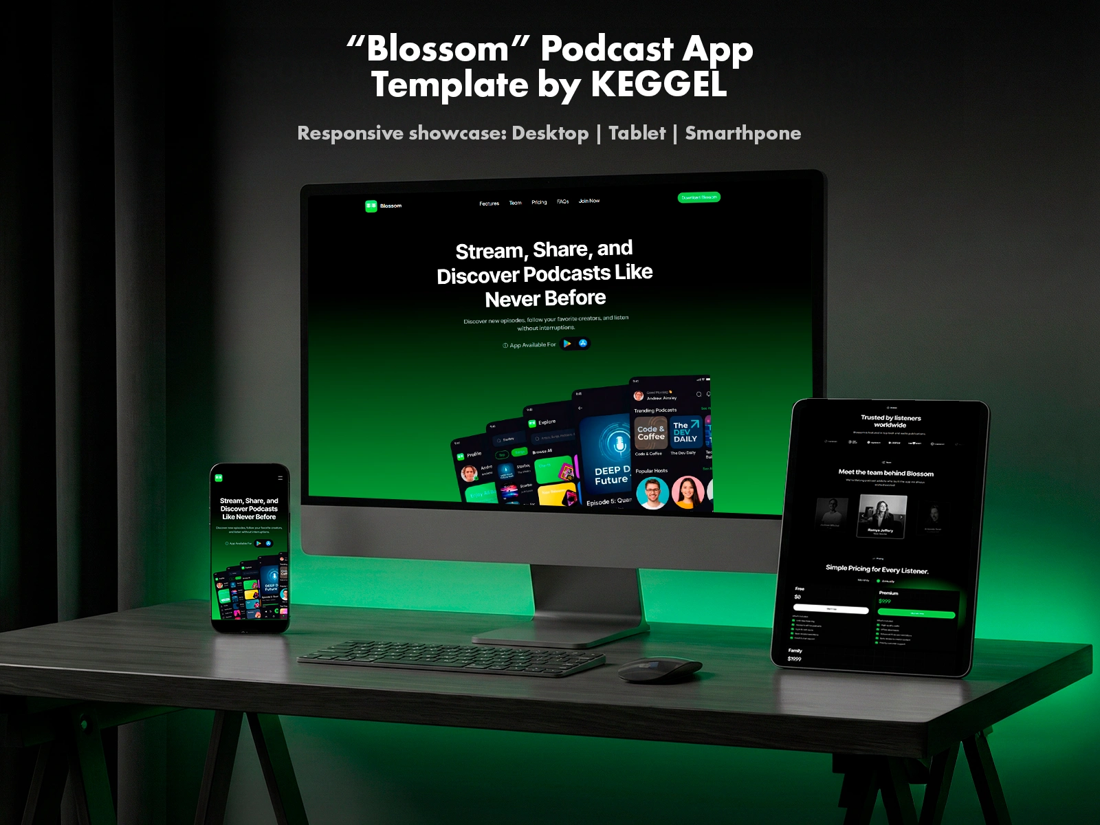 Designed Blossom, a Framer template for quick launch of podcast apps promotional sites.