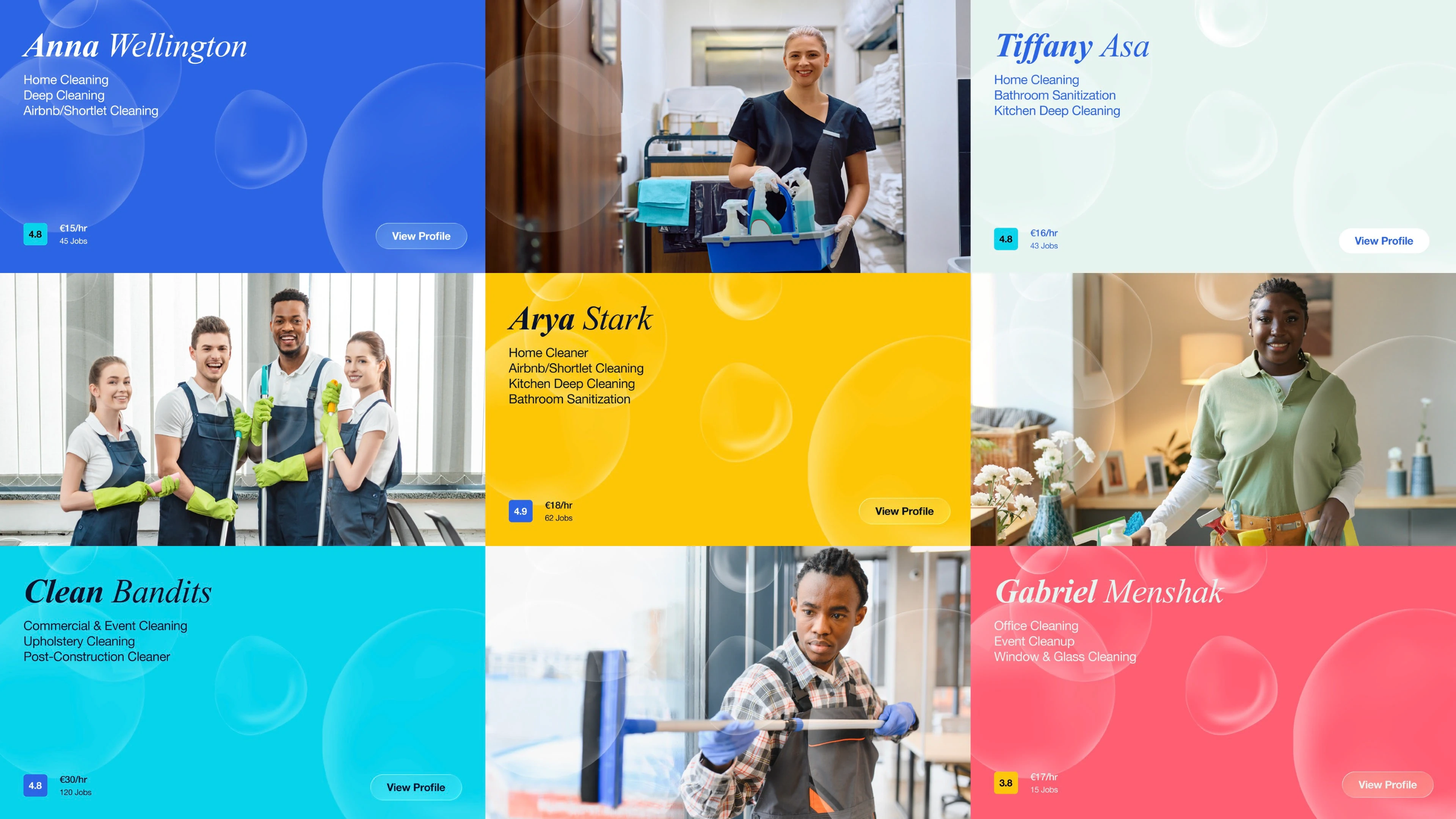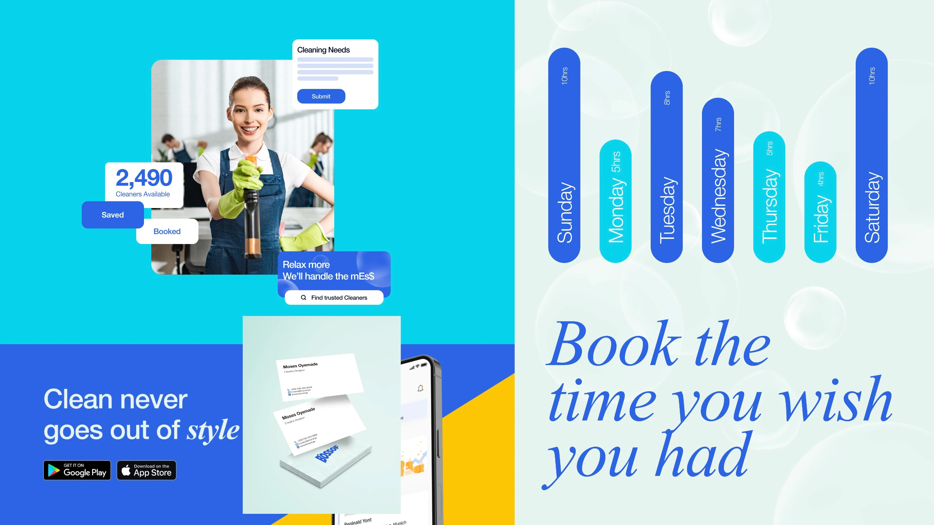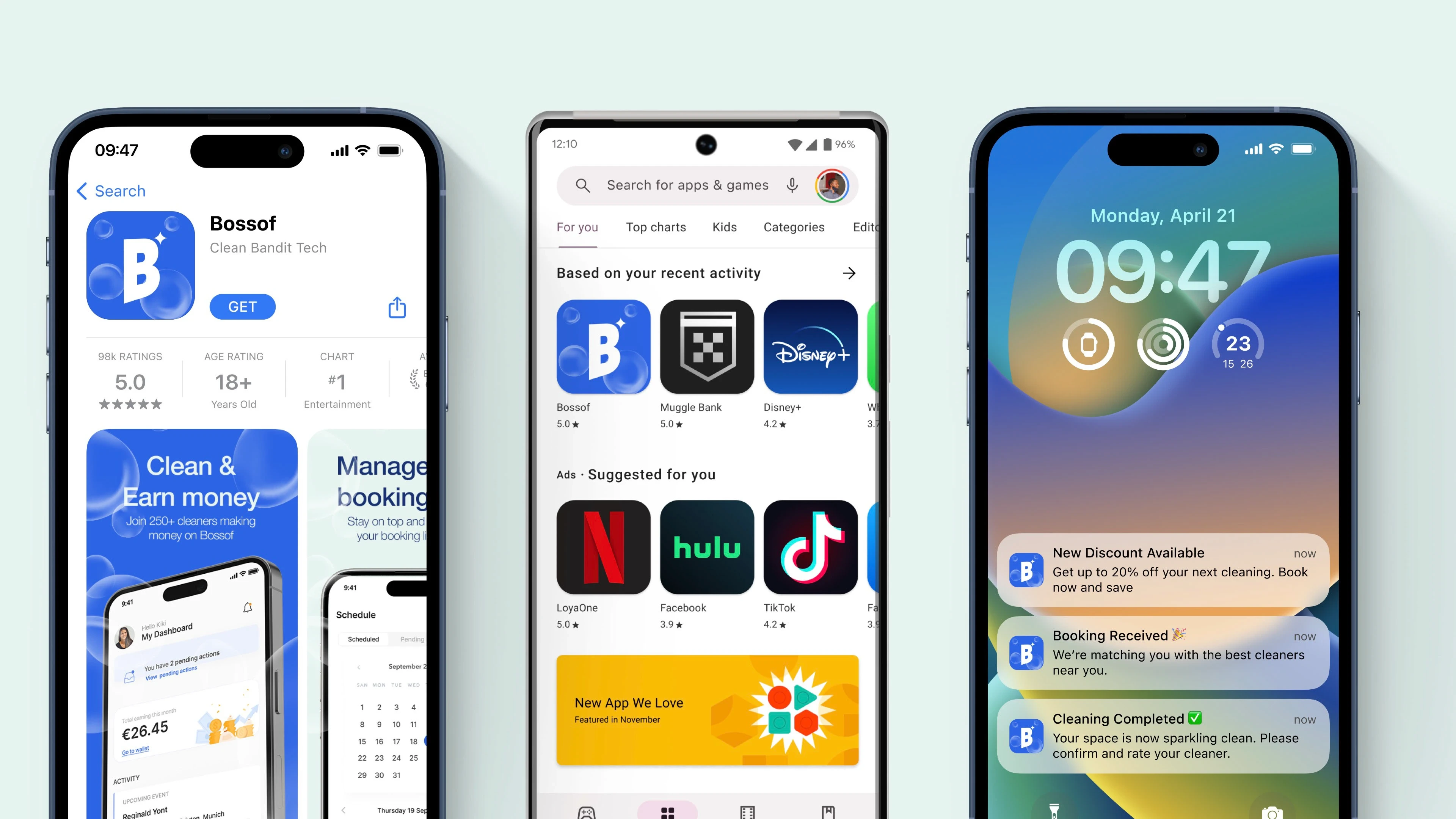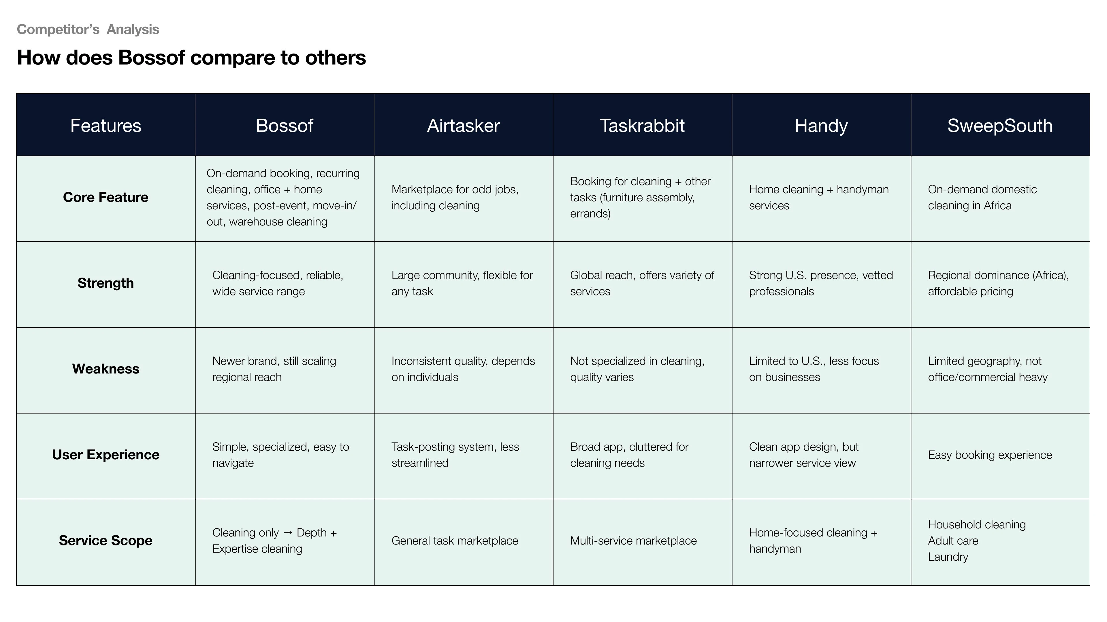 Brand, UX, motion design and Brand Strategy for Bossof an app for anyone who wants a cleaner home or office or Warehouse etc.