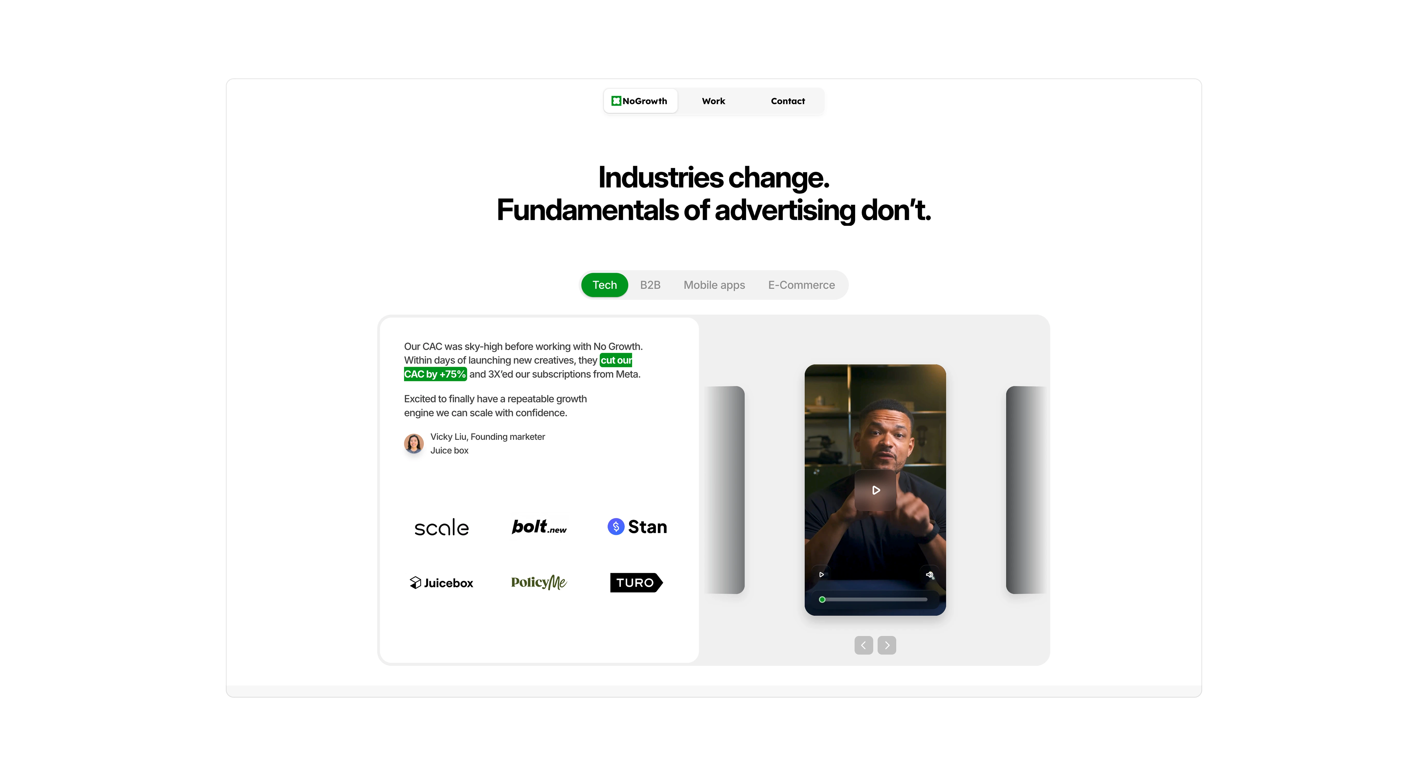 Redesigned site to new brand: clean layouts, custom Bunny.net video player, CMS case studies with filters, subtle microinteractions & a Sheets-backed lead form.