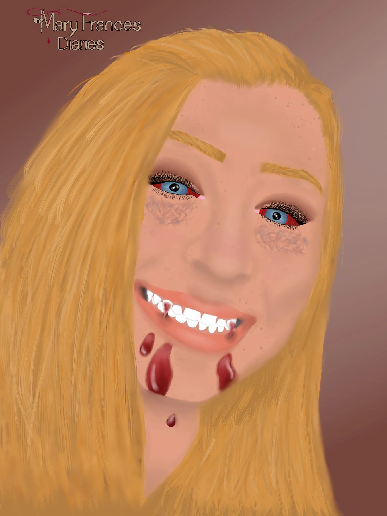 Digitally drawn image from 2020 (I was in 9th grade I'm a junior in college now for reference). Reworked myself to be a vampire from the Vampire Diaries.