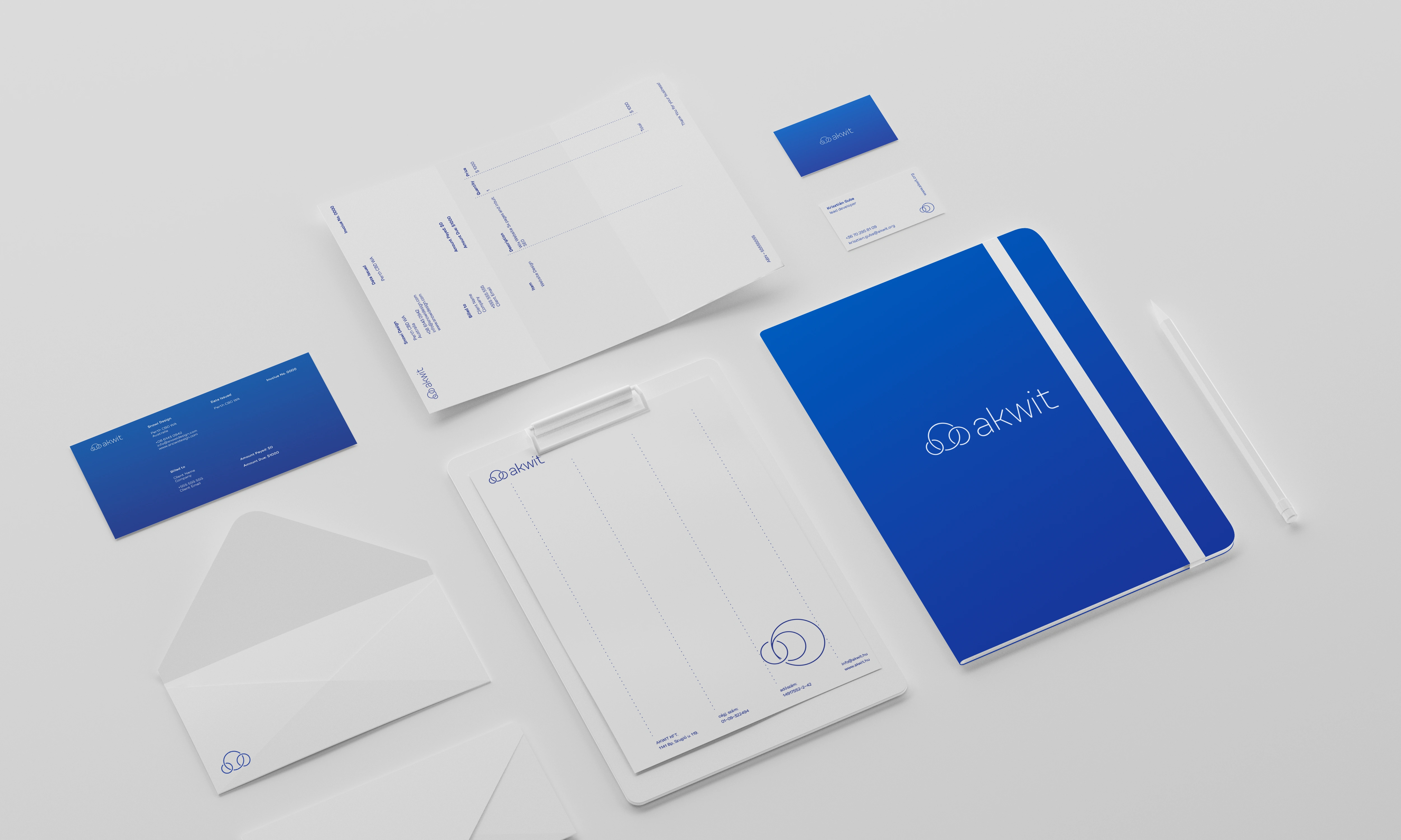 Akwit is a cloud-based IT service company with a generative logotype, based on three different sized circles, symbolizing the cloud, particles, and information transfer and connection. Creating their brand image - from the logotype and website design to iconography and font usage - was driven by a light and minimalistic design approach. The aim was to reflect the values of the company: reliability, professionalism and a smooth problem-solving attitude in cloud-based IT Services.