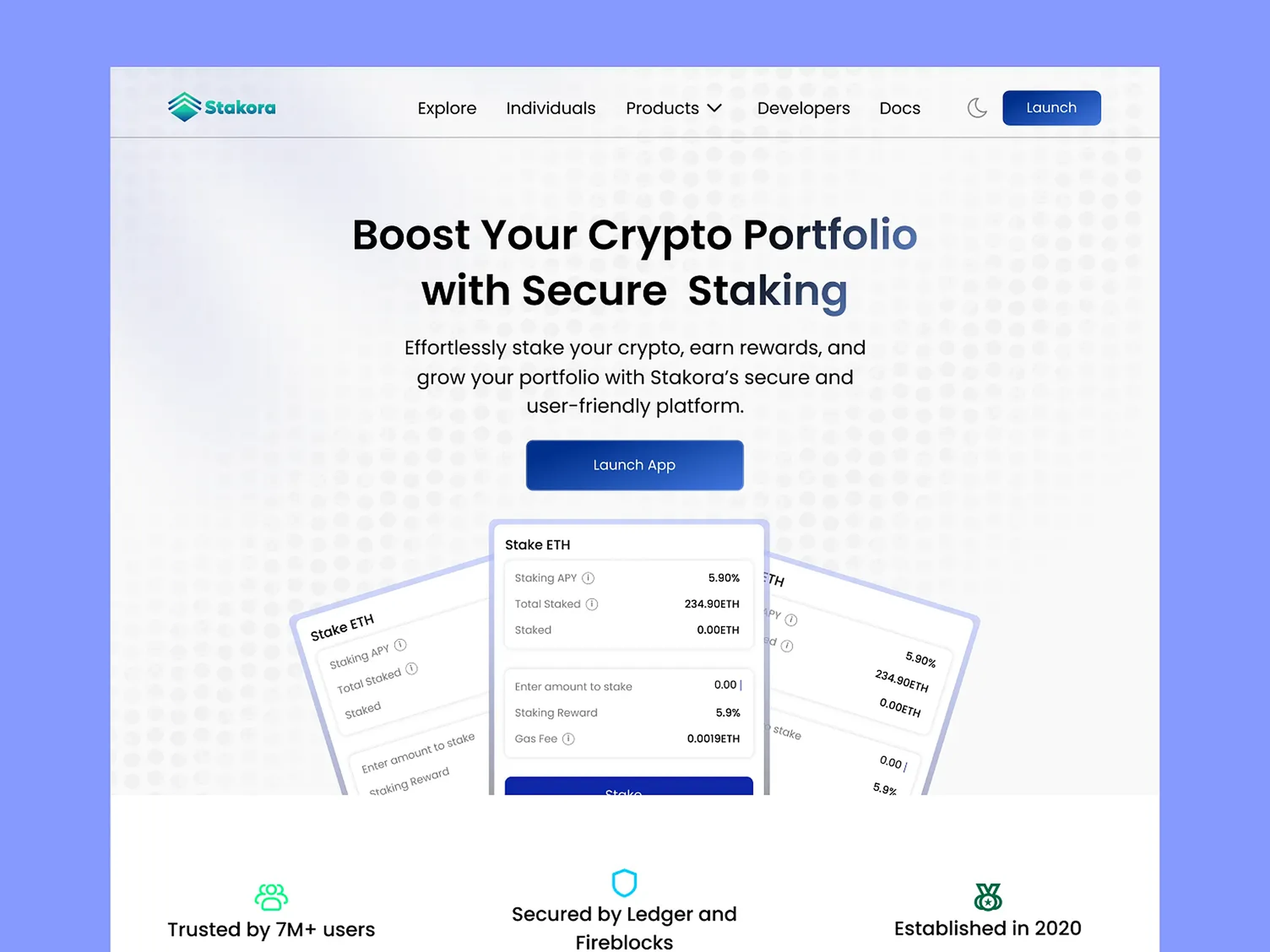 Stakora is a secure, intuitive platform that helps users stake their crypto, earn real-time rewards, and grow their portfolios. Trusted by millions, it integrates with wallets like Ledger and Fireblocks and supports staking across top assets, from ETH to ADA. With clear explanations and helpful visuals, Stakora guides users from wallet connection through reward harvesting effortlessly.