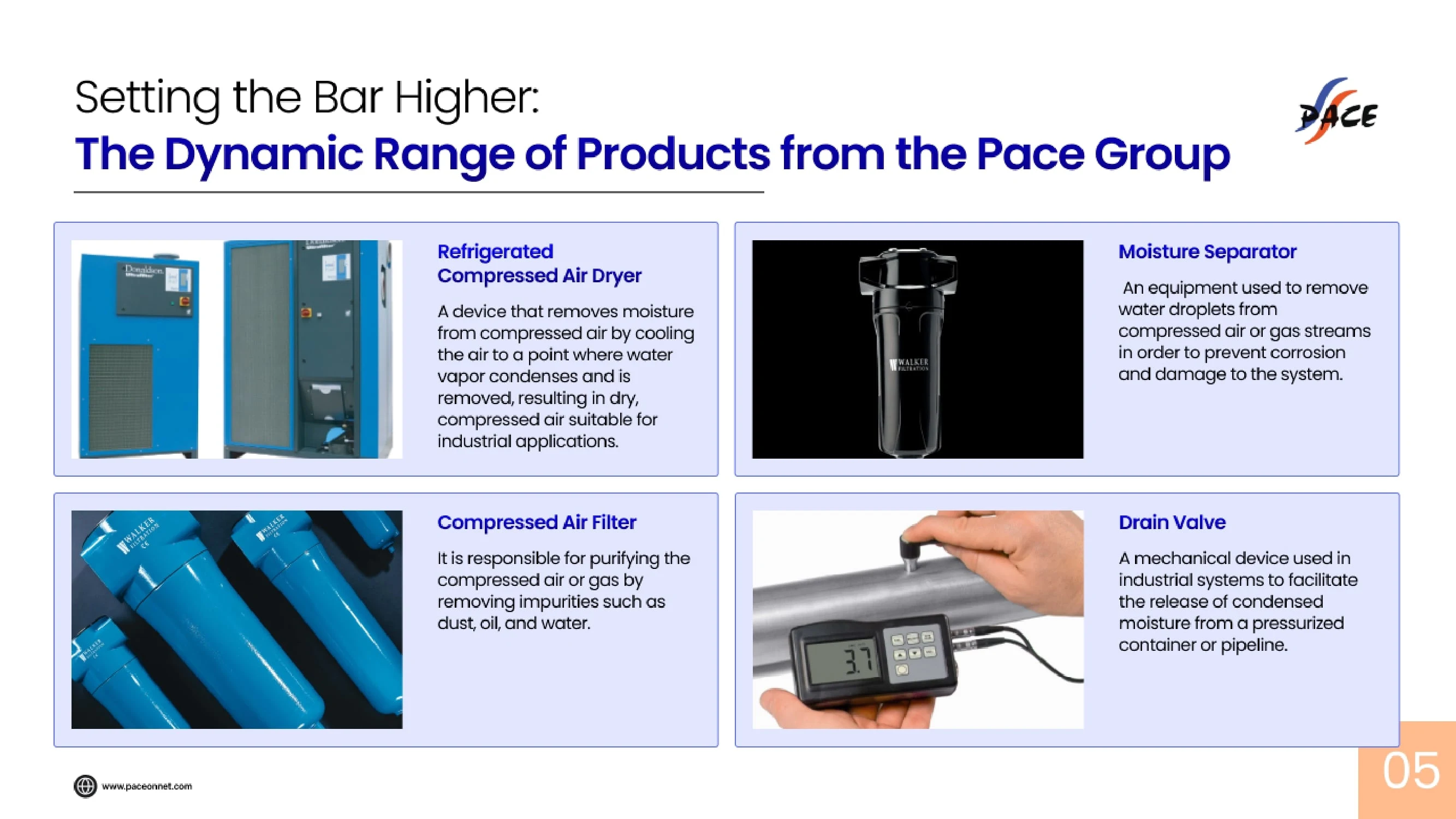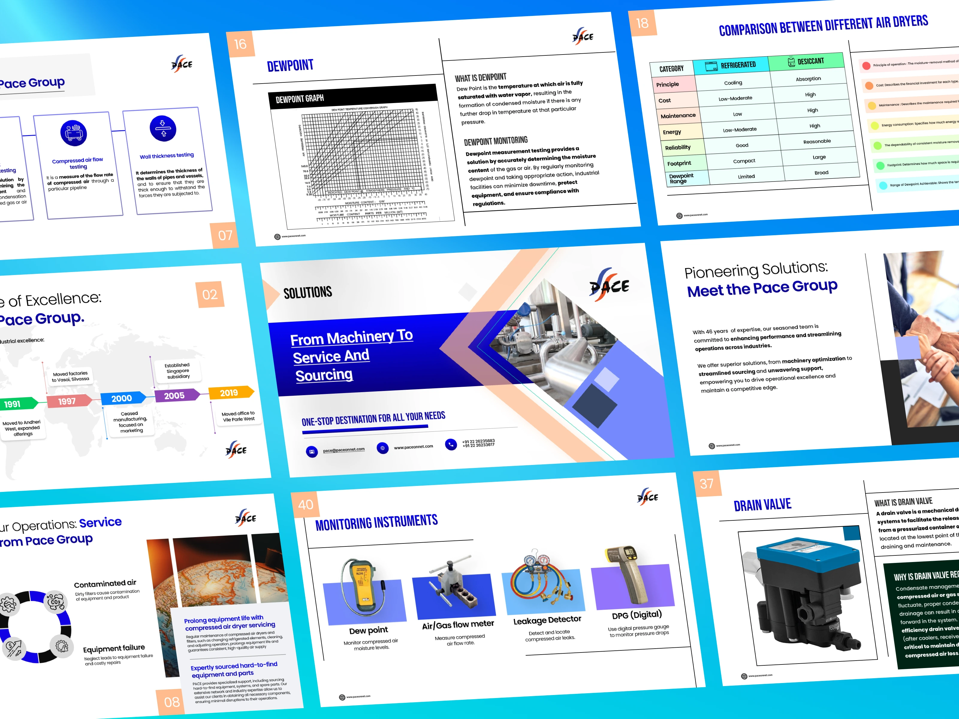 I developed a comprehensive Product & Solutions Deck that showcases PaceOnNet’s full range of industrial offerings — from compressed-air dryers, filters, and rotary screw compressors to turnkey installation and maintenance solutions. By collaborating closely with technical teams and reviewing product documentation, I distilled complex engineering details into clear, benefit-oriented messaging tailored for procurement teams and industrial decision-makers. I also designed a unified visual and narrative framework that connects product capabilities with real operational outcomes — reliability, efficiency, compliance, and cost savings — positioning PaceOnNet as a technically strong, solutions-first partner for industrial clients.