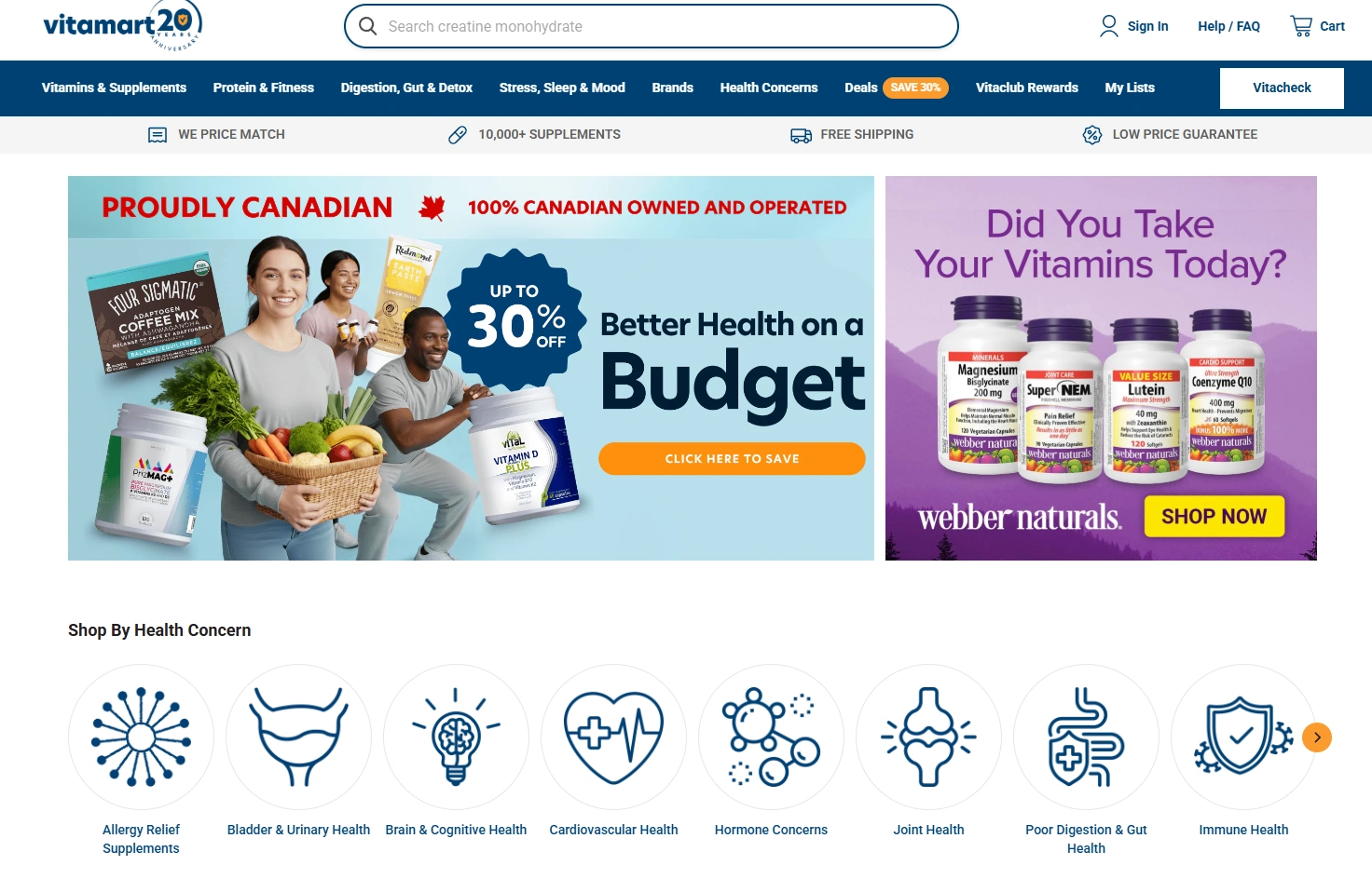 Scaled Vitamart revenue by 30% YoY ($10M → $13M). Optimized a $1M+ annual budget to hit a strict 600% ROAS target.