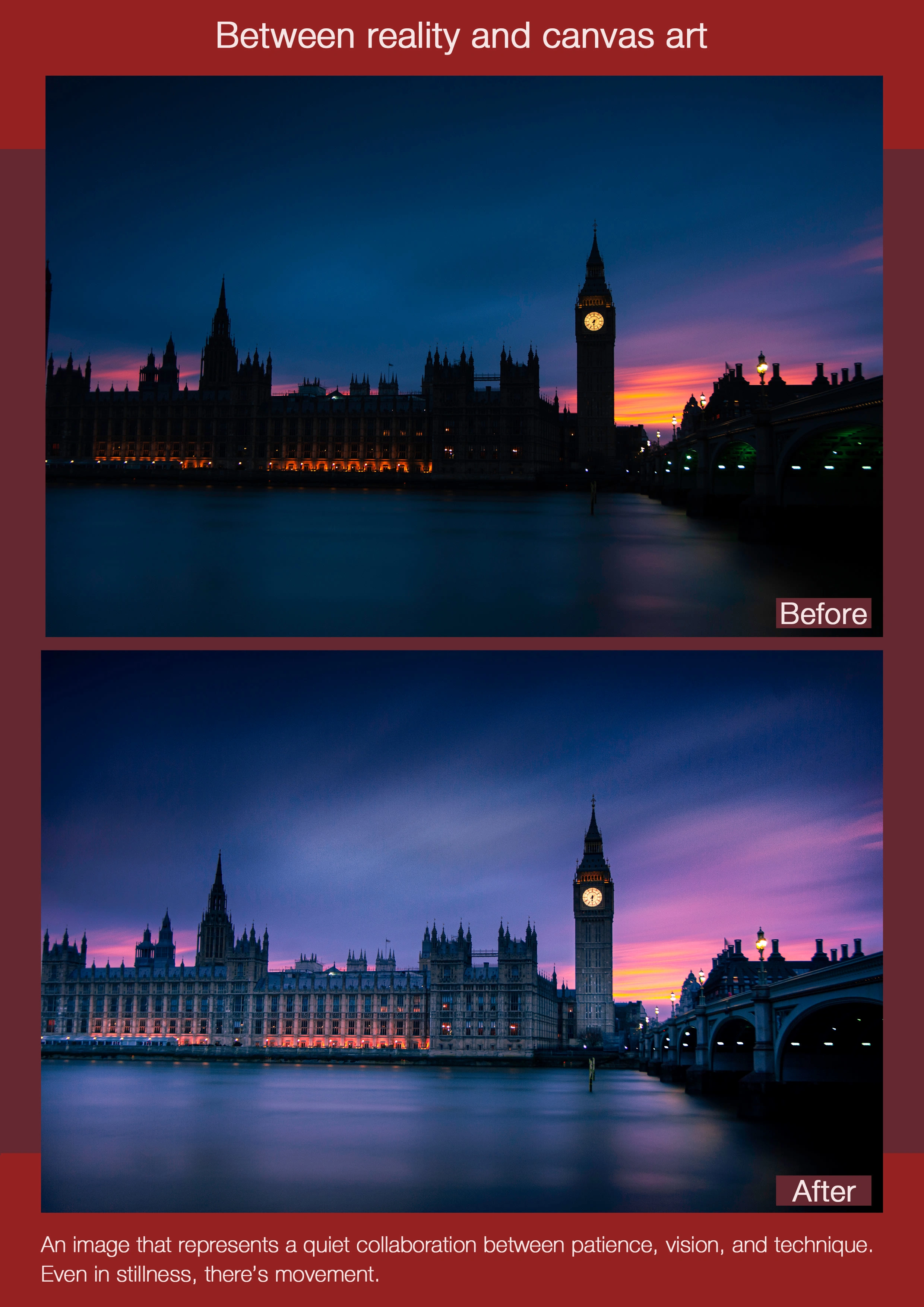 A long exposure shot with a 10-stop ND filter, edited in layers using multiple exposures—balancing detail and light at the edge of reality.