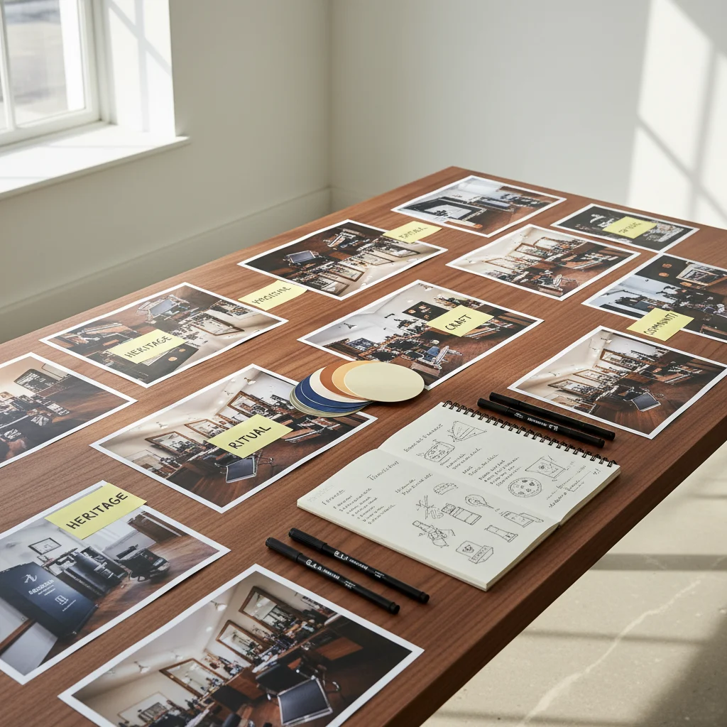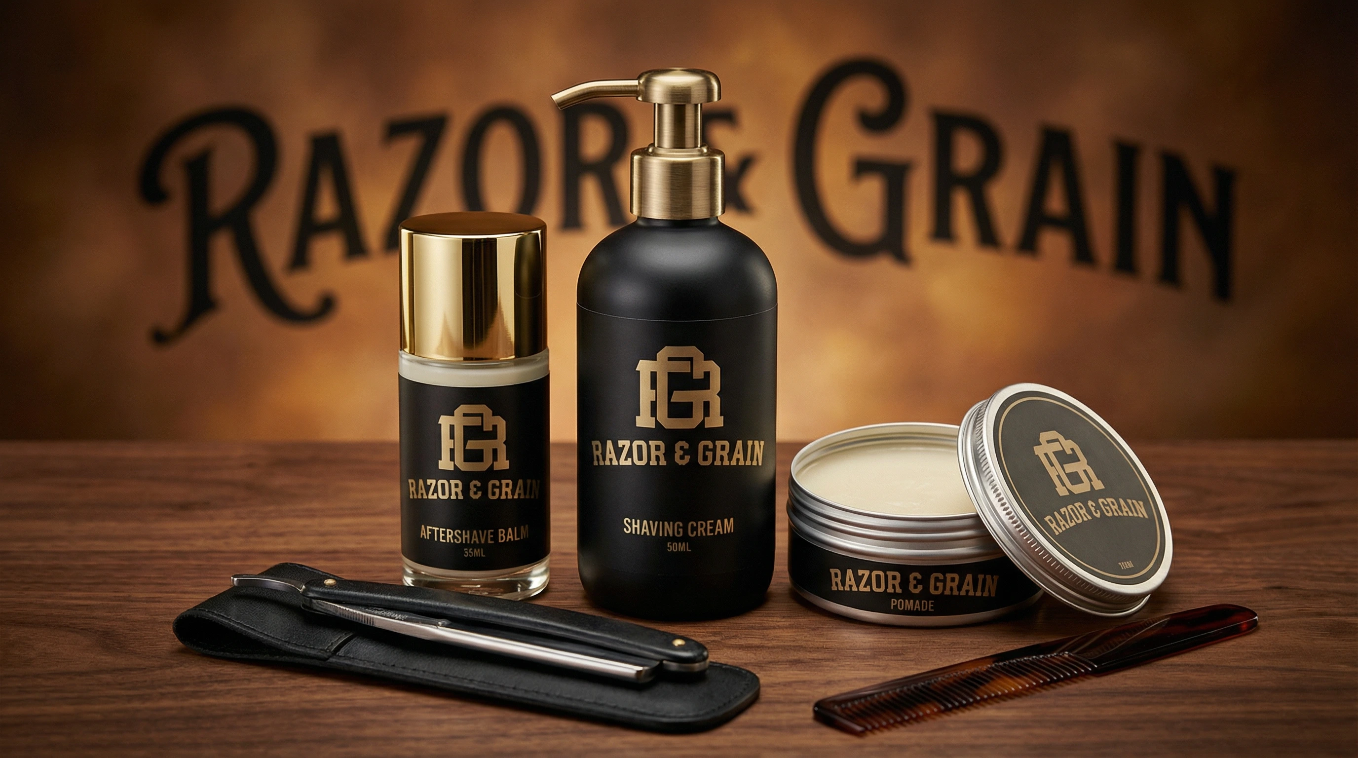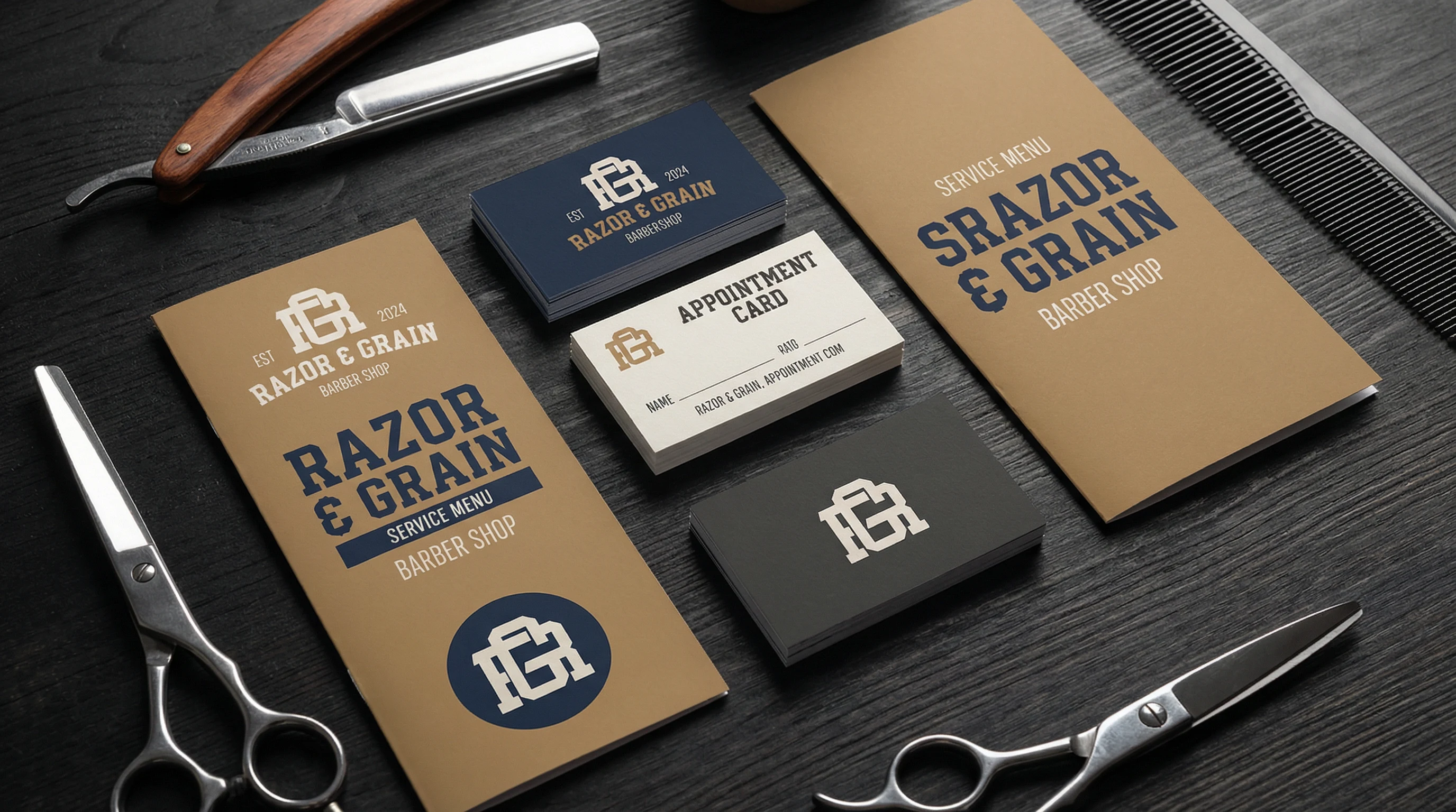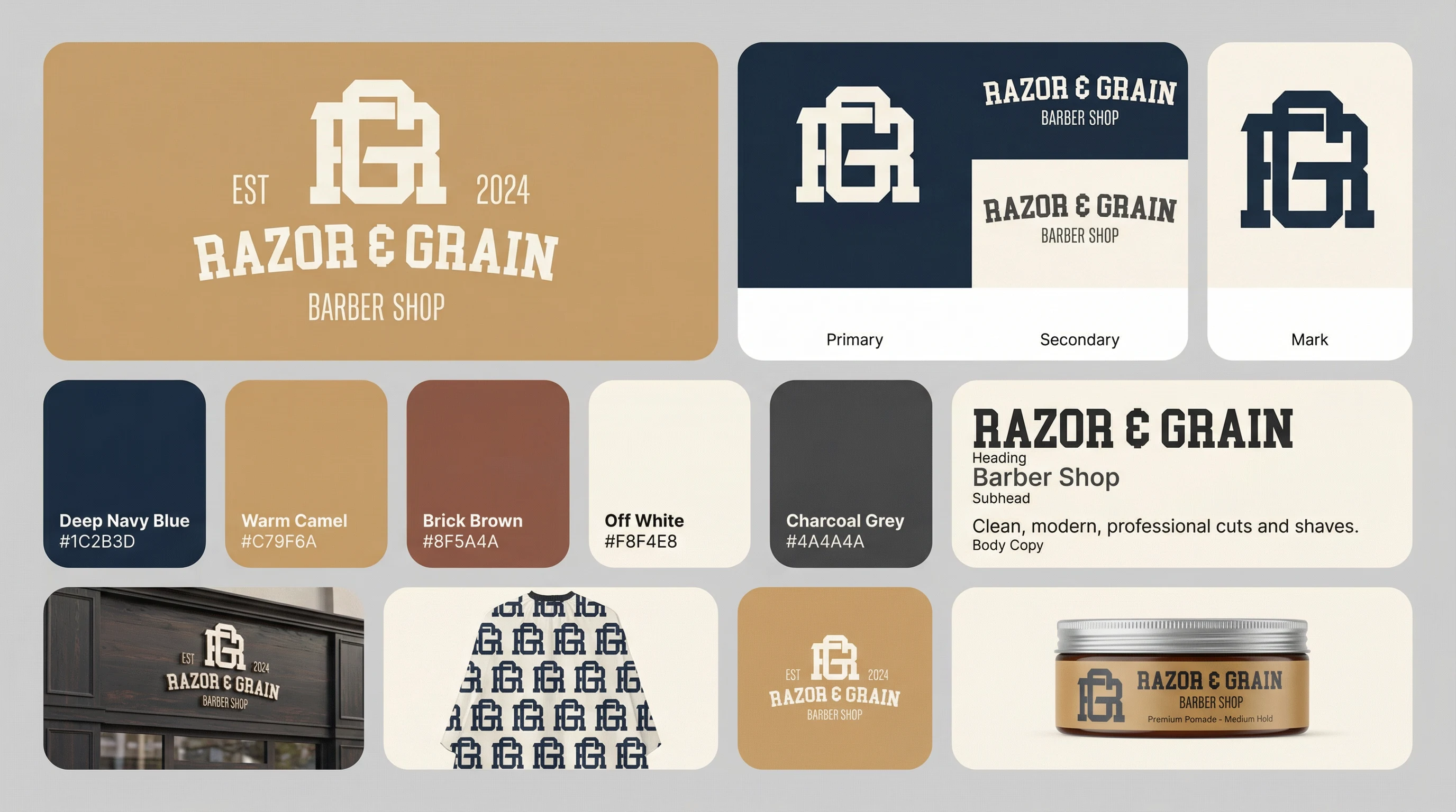 I started with discovery and research, studying traditional barbershop cues like vintage signage, wood textures, and metal details alongside contemporary grooming brands. Mapping core attributes—heritage, precision, and ritual—I built moodboards to test how far the visuals could push into modern territory without losing that rooted barbershop feel.