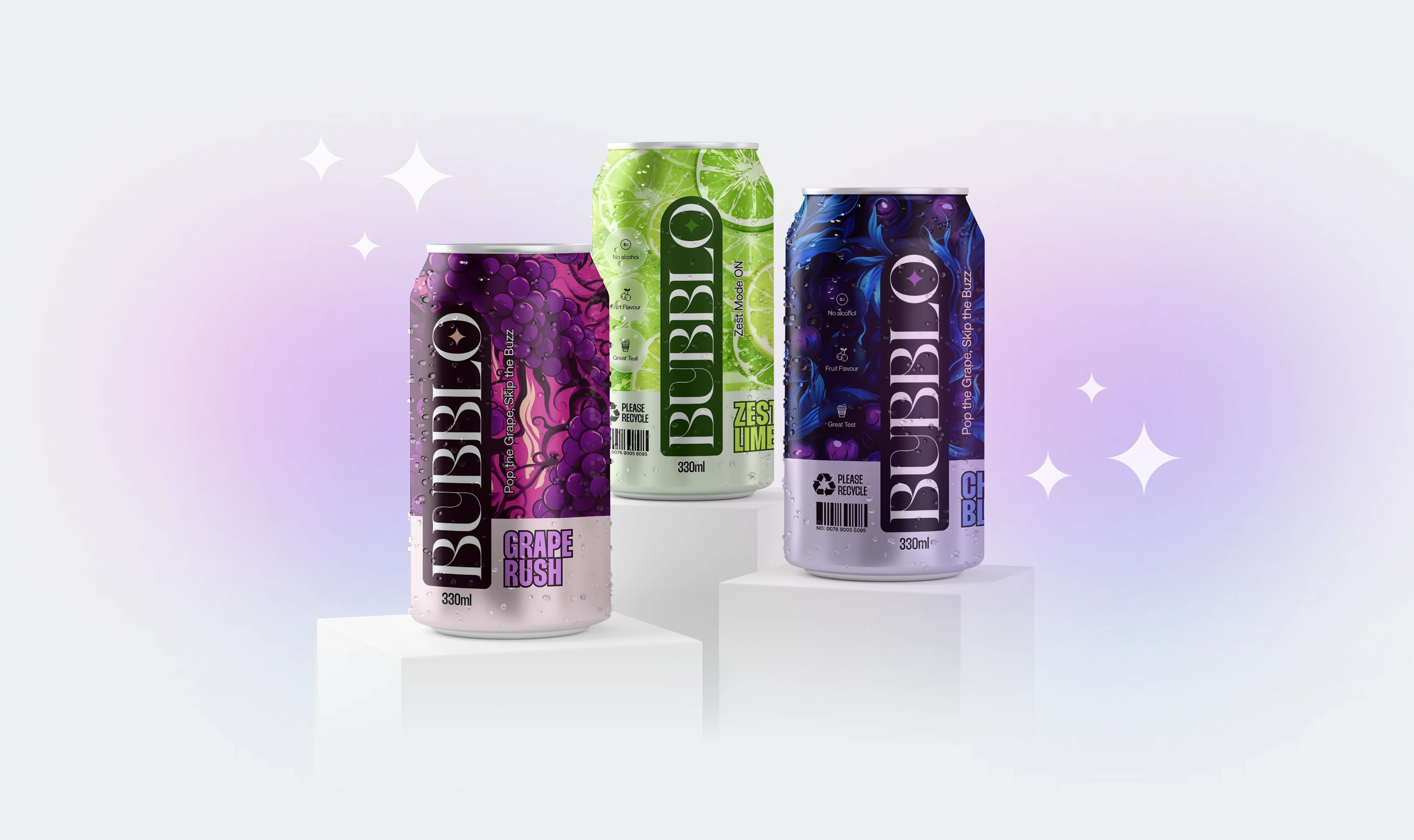 Bubblo is a vibrant, alcohol-free canned drink brand designed for the modern, health-conscious consumer. The project includes full product branding.