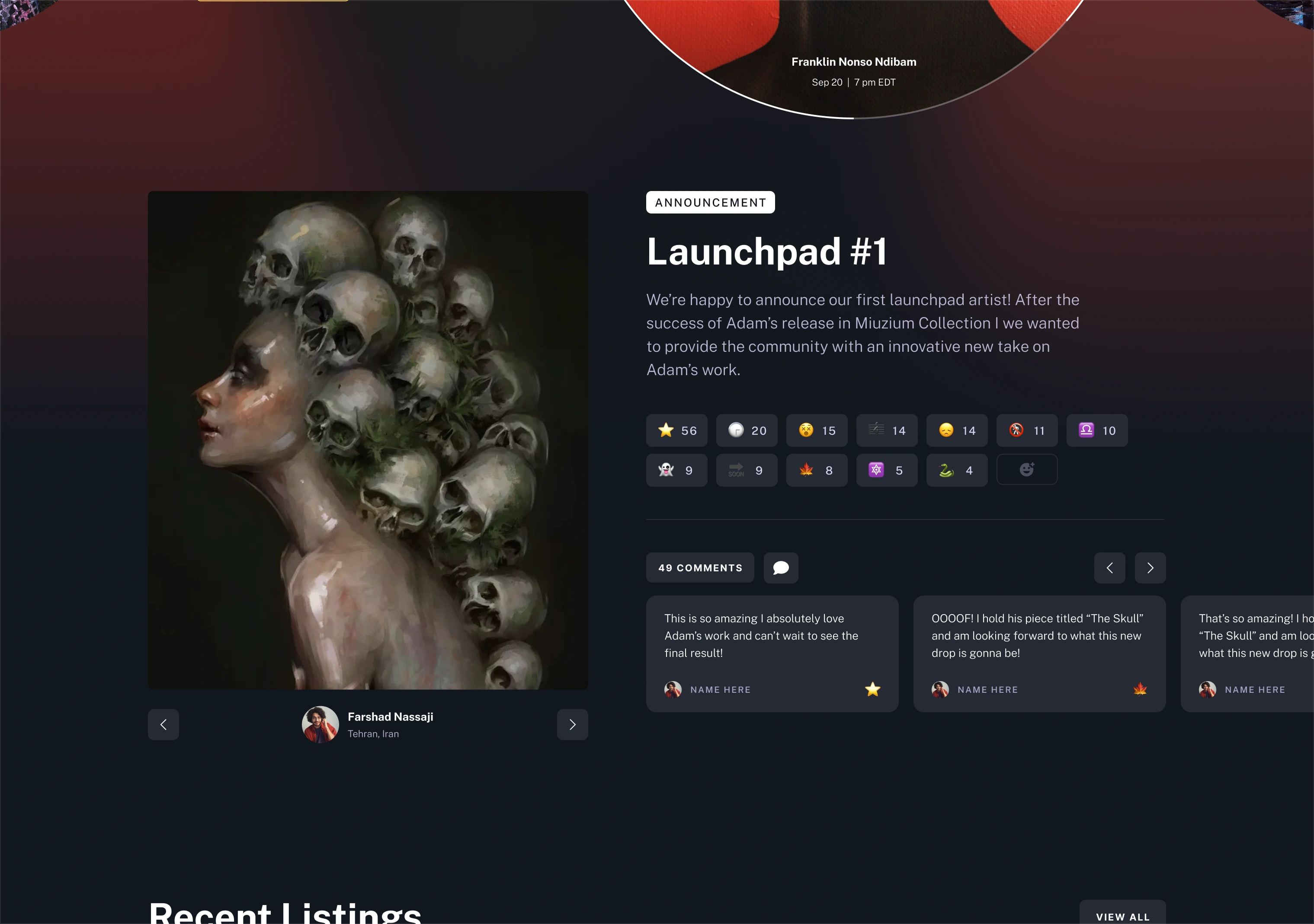 Artist launchpad pages with live community feedback