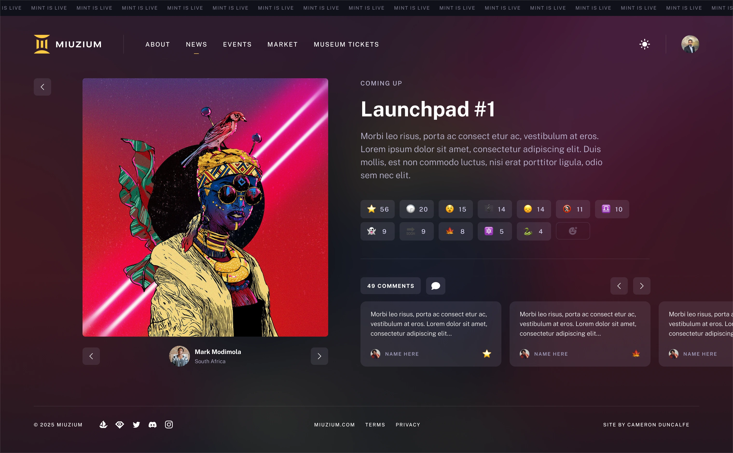 Beyond the collection itself, Miuzium functioned as an exclusive private art club — complete with artist launchpads, a community-driven marketplace, and live events connecting digital ownership to physical cultural experiences.