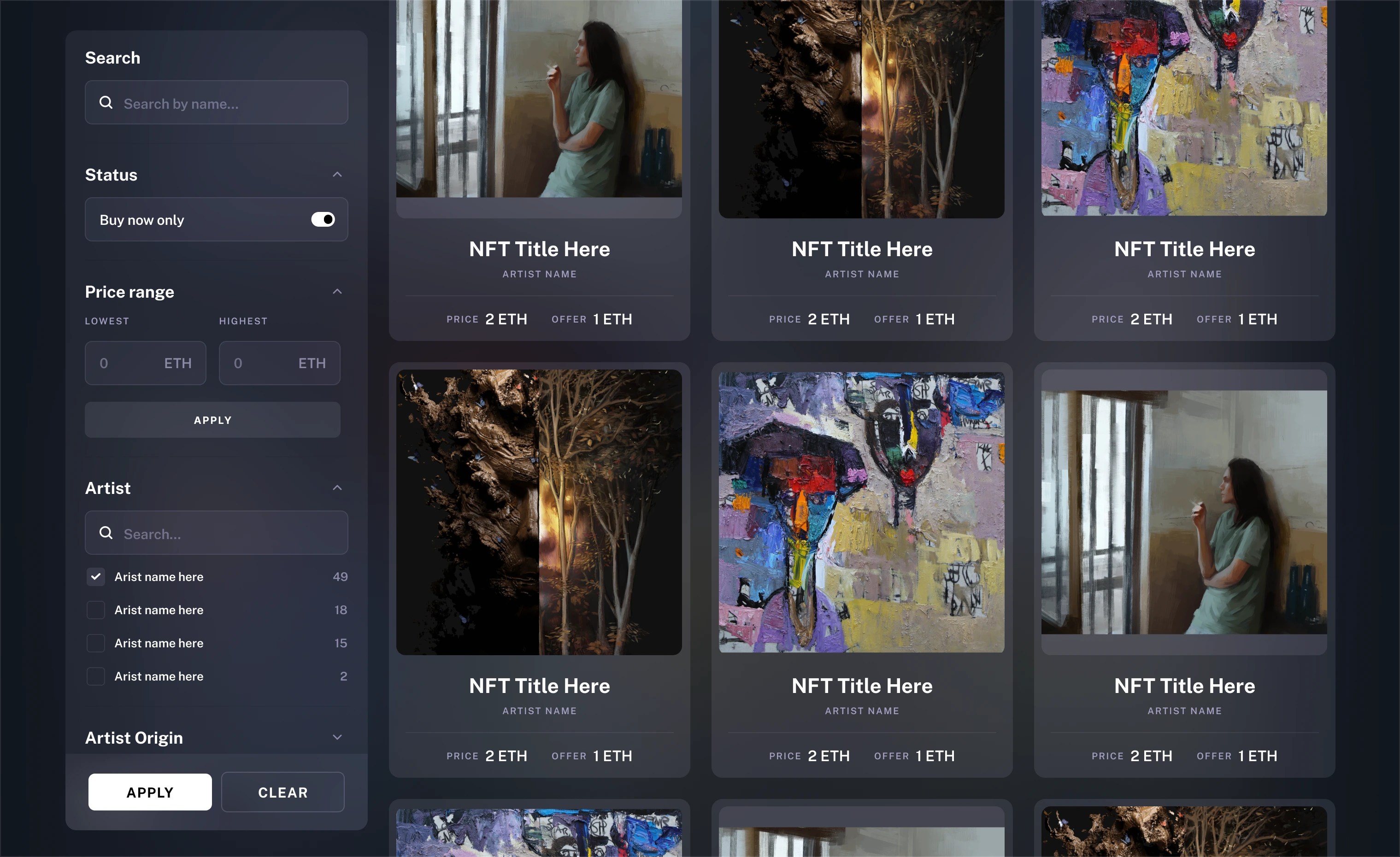 Every screen was crafted to balance gallery-level sophistication with Web3-native functionality — blending rich gradients, fine typography, and subtle motion for a cinematic, immersive feel.