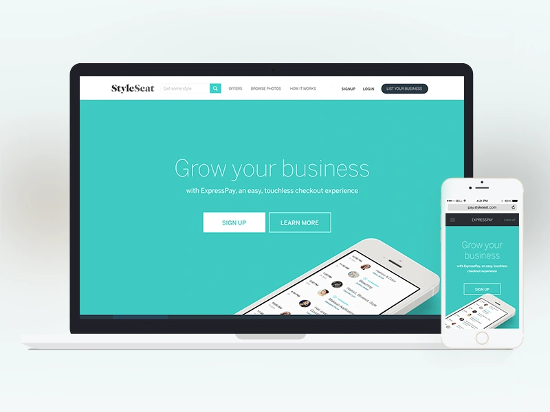 Landing page with parallax scroll effects for StyleSeat's launch of ExpressPay payment processor while I was working there as a UX Designer