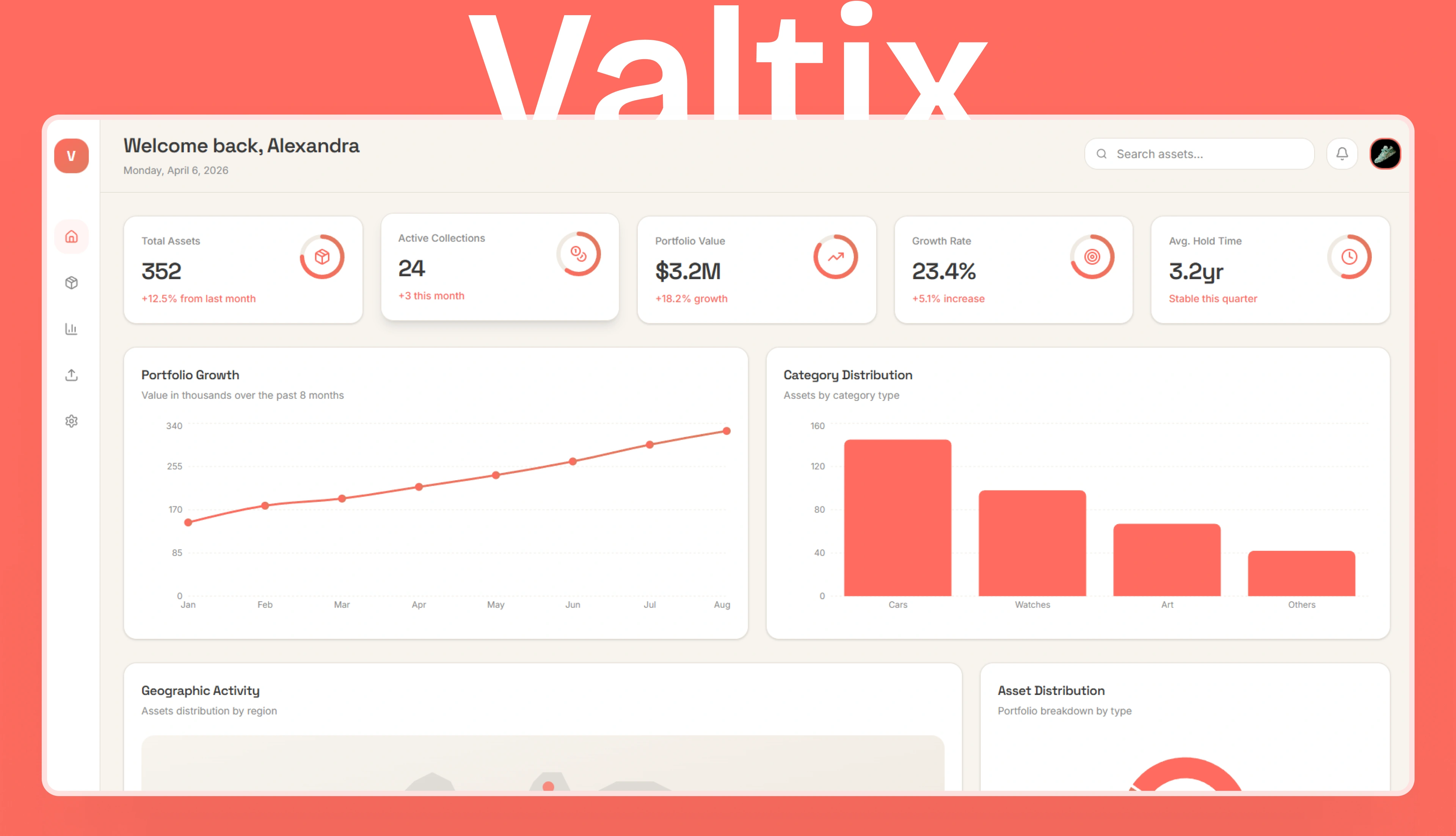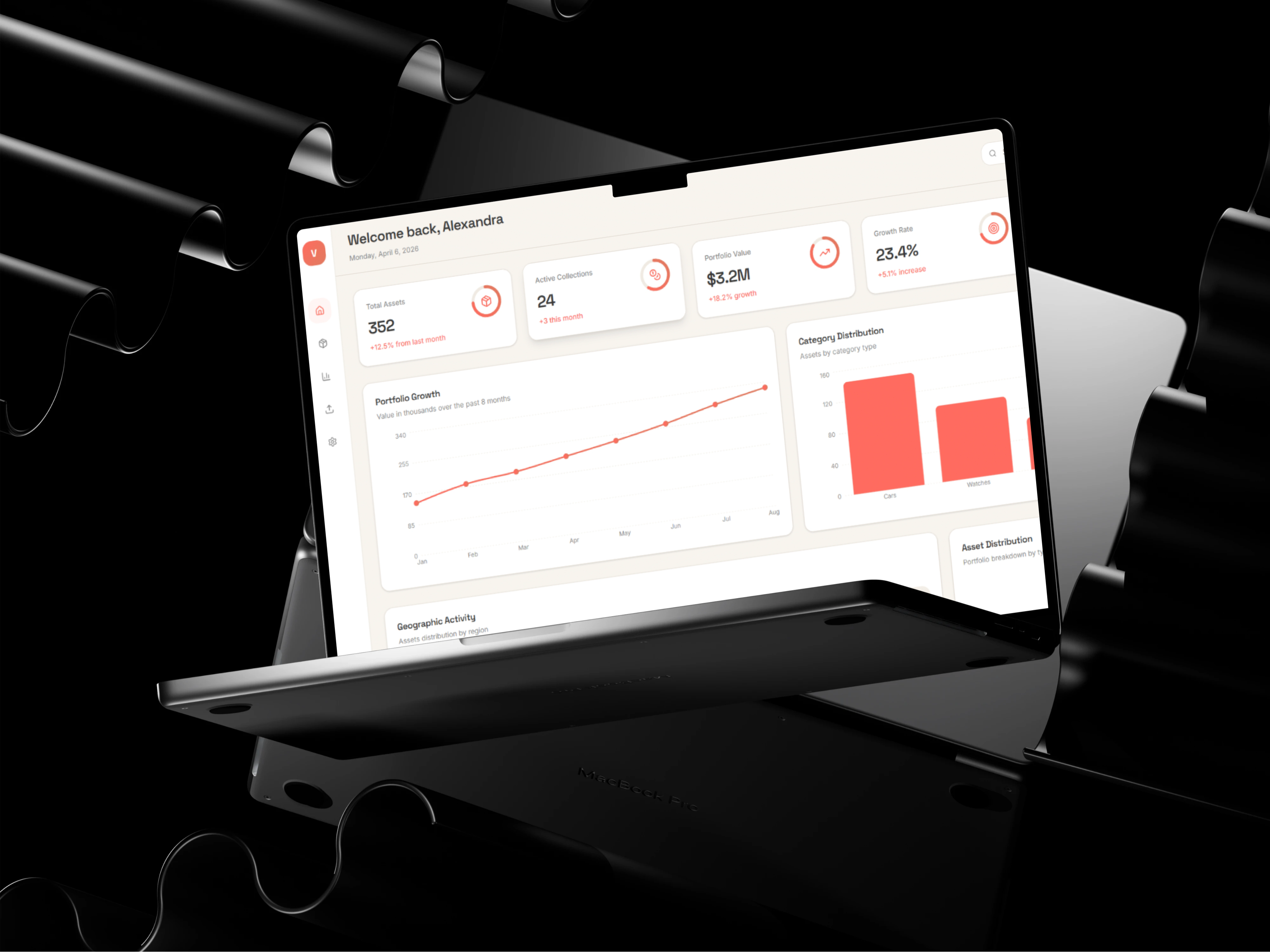 This project focuses on designing a premium light-mode home dashboard for a collectibles vault management platform, enabling users to track high-value assets such as luxury cars, watches, art, and rare collectibles. The goal was to create a clean, refined, and highly structured interface that transforms complex asset data into a calm, elegant, and easy-to-understand experience.
