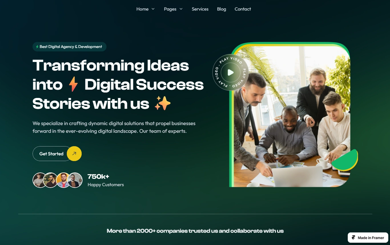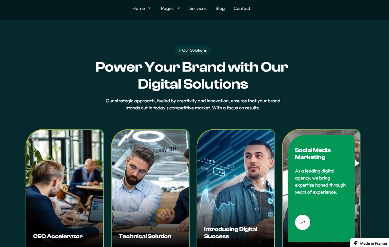 Crafted a dynamic Framer website for a digital agency, showcasing services, case studies, and client success with a modern, conversion-driven design.