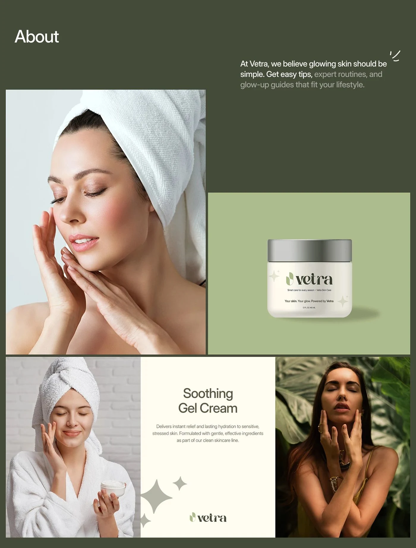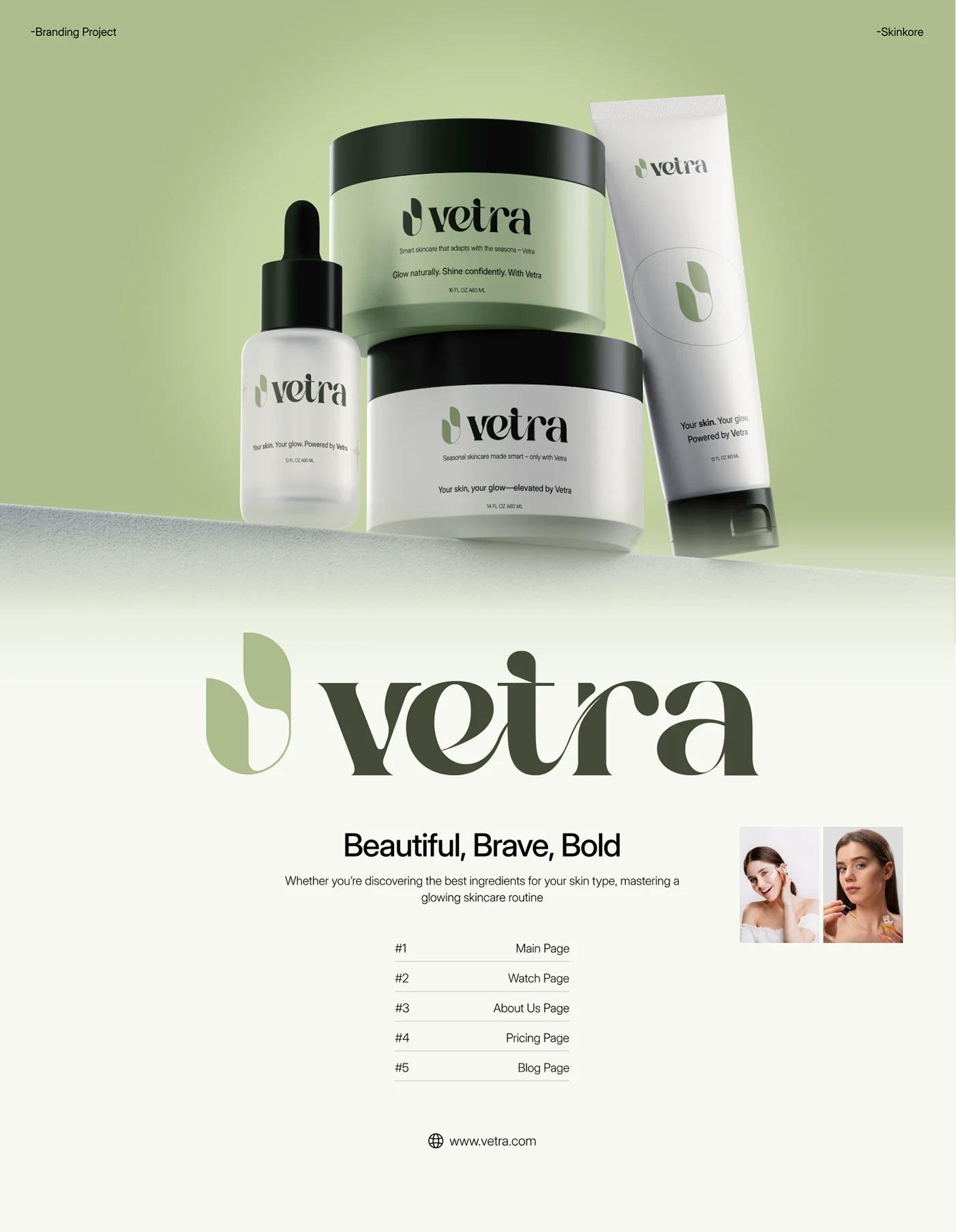 This project was a full-scale branding and e-commerce website transformation for Vetra, a modern, minimalist skincare brand. The goal was to craft a high-end, feminine visual identity that reflects the purity and sophistication of the brand’s products while delivering a seamless shopping experience.