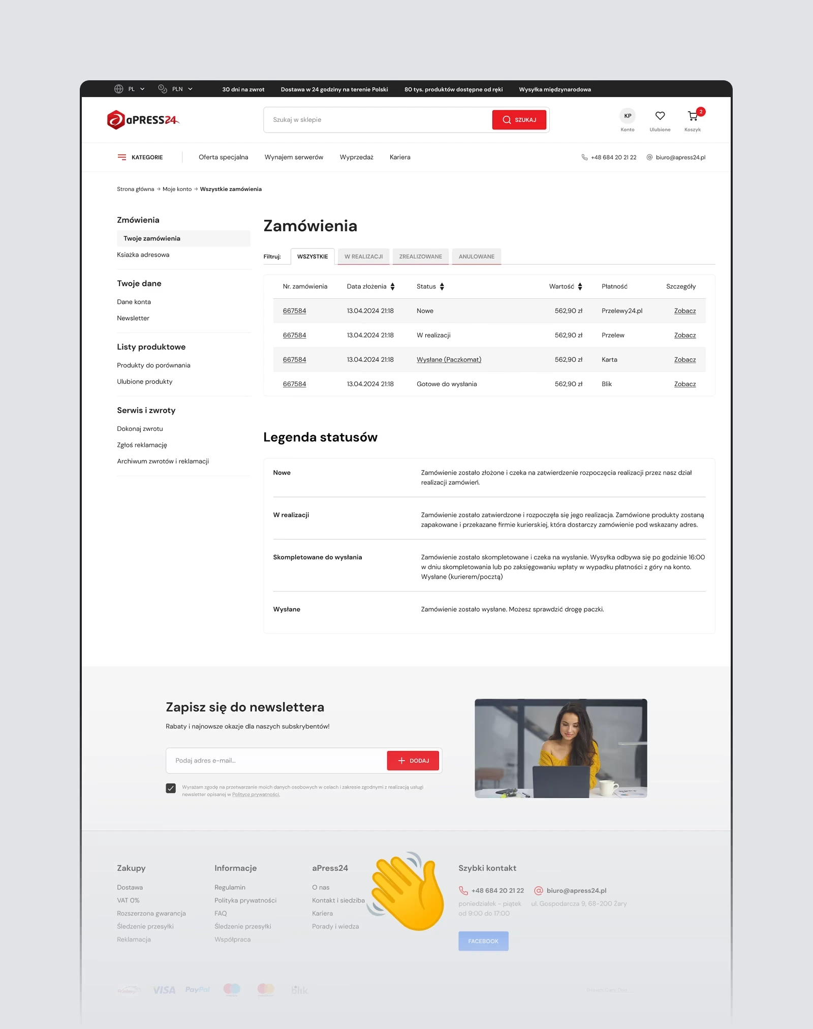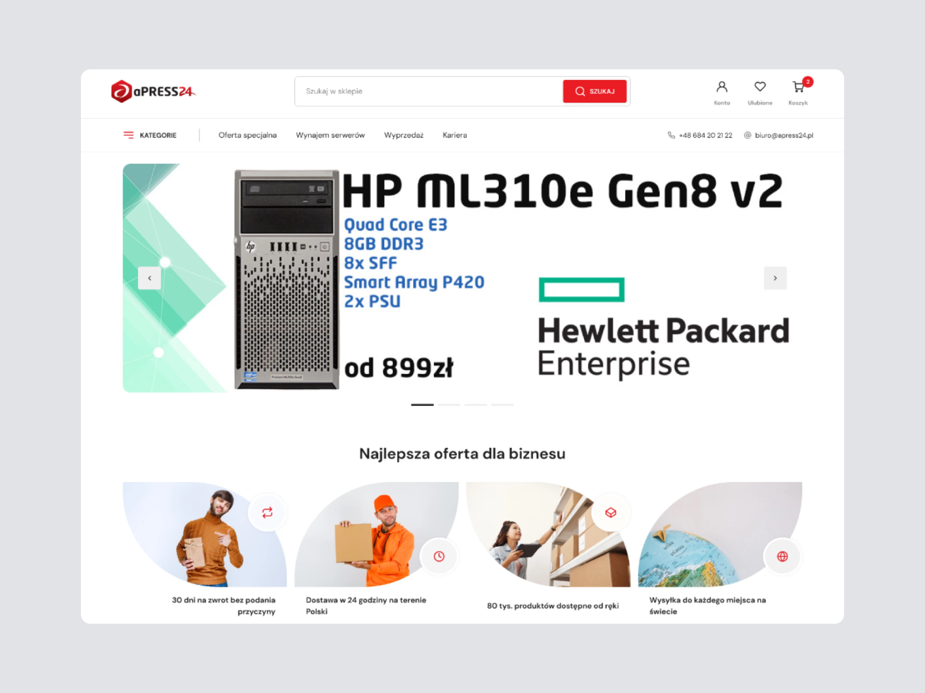 Here’s a look at my full-scope UX/UI design for aPress24.pl, an eCommerce platform offering professional server hardware and components.