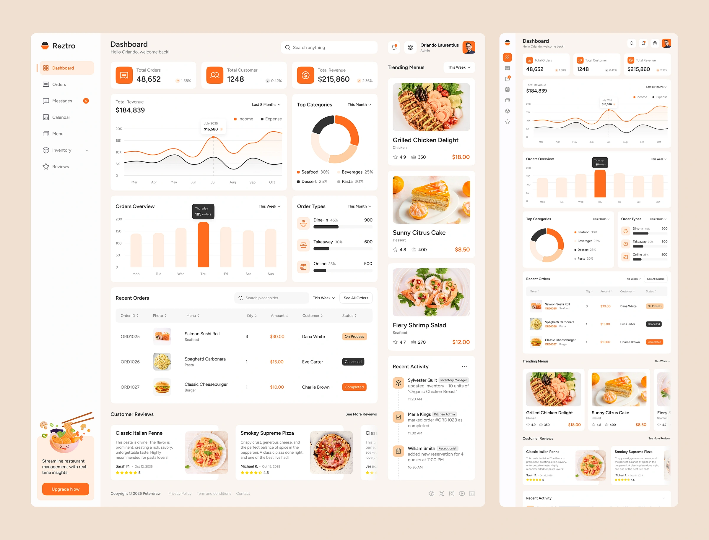 In the fast-paced restaurant industry, many businesses struggle with outdated and inefficient dashboard designs, making it difficult for staff to manage orders, update menus, and oversee daily operations effectively. Most restaurant management systems are either too cluttered, lack user-friendly navigation, or fail to provide real-time insights, leading to slow service, order errors, and operational inefficiencies. This results in frustrated staff, mismanaged workflows, and a decline in overall customer satisfaction.