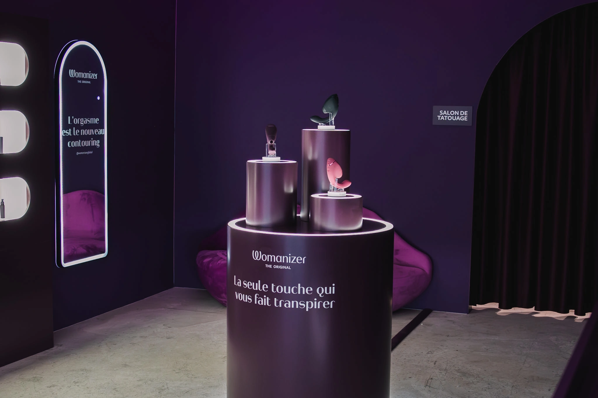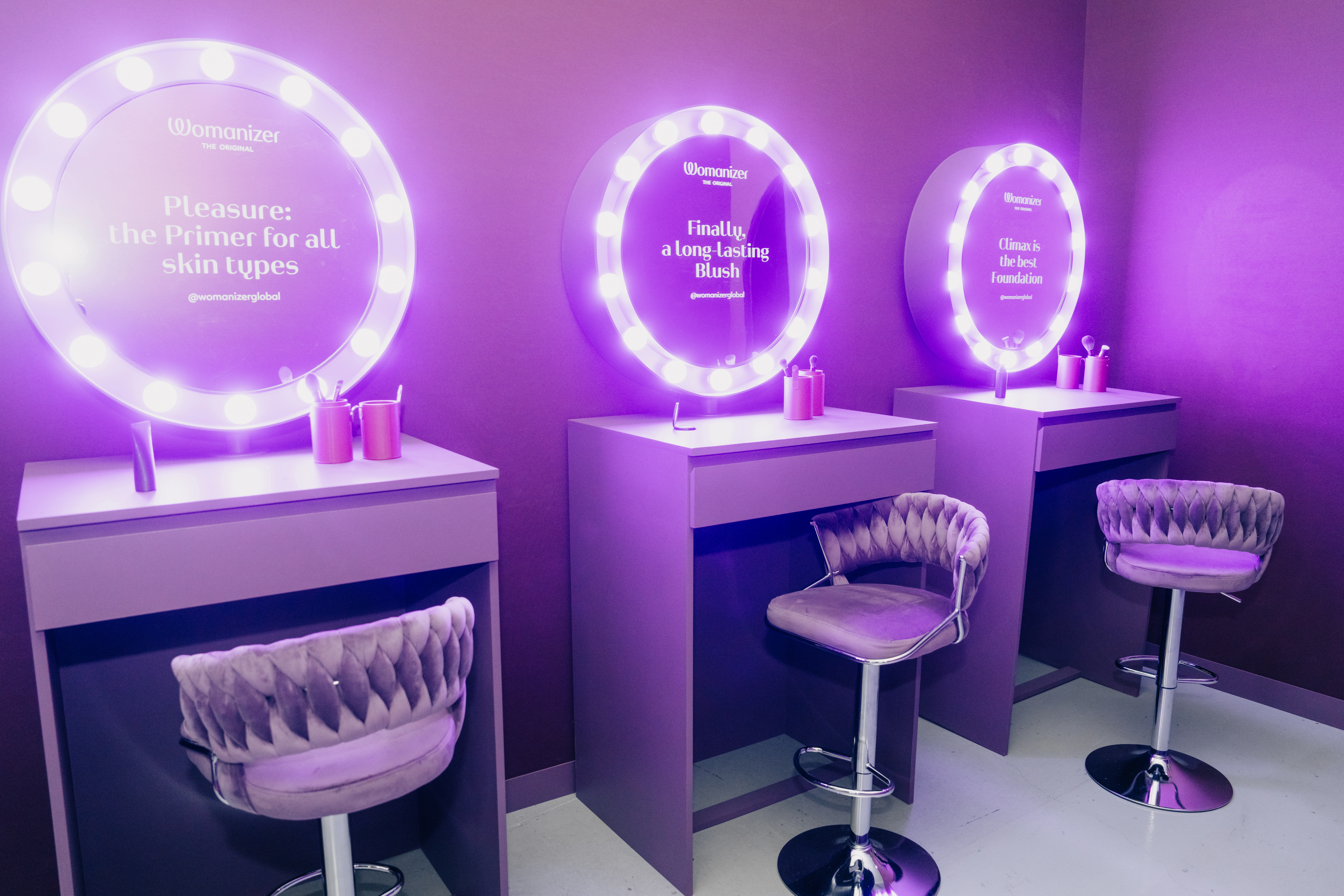 We built the core concept around the insight that pleasure is the ultimate self-care: From Self-Pleasure to Self-Care. This narrative was physically realised in The Womanizer Beauty Bar - a monochromatic space designed to cut through city noise. The concept was to prove that the glow from a healthy sex life (which promotes improved skin elasticity and collagen synthesis ) is superior to any cosmetic product. The entire experience, from the vanity mirrors to the hero staging, was designed to subvert the beauty ritual and turn every station into a confident, shareable photo moment.