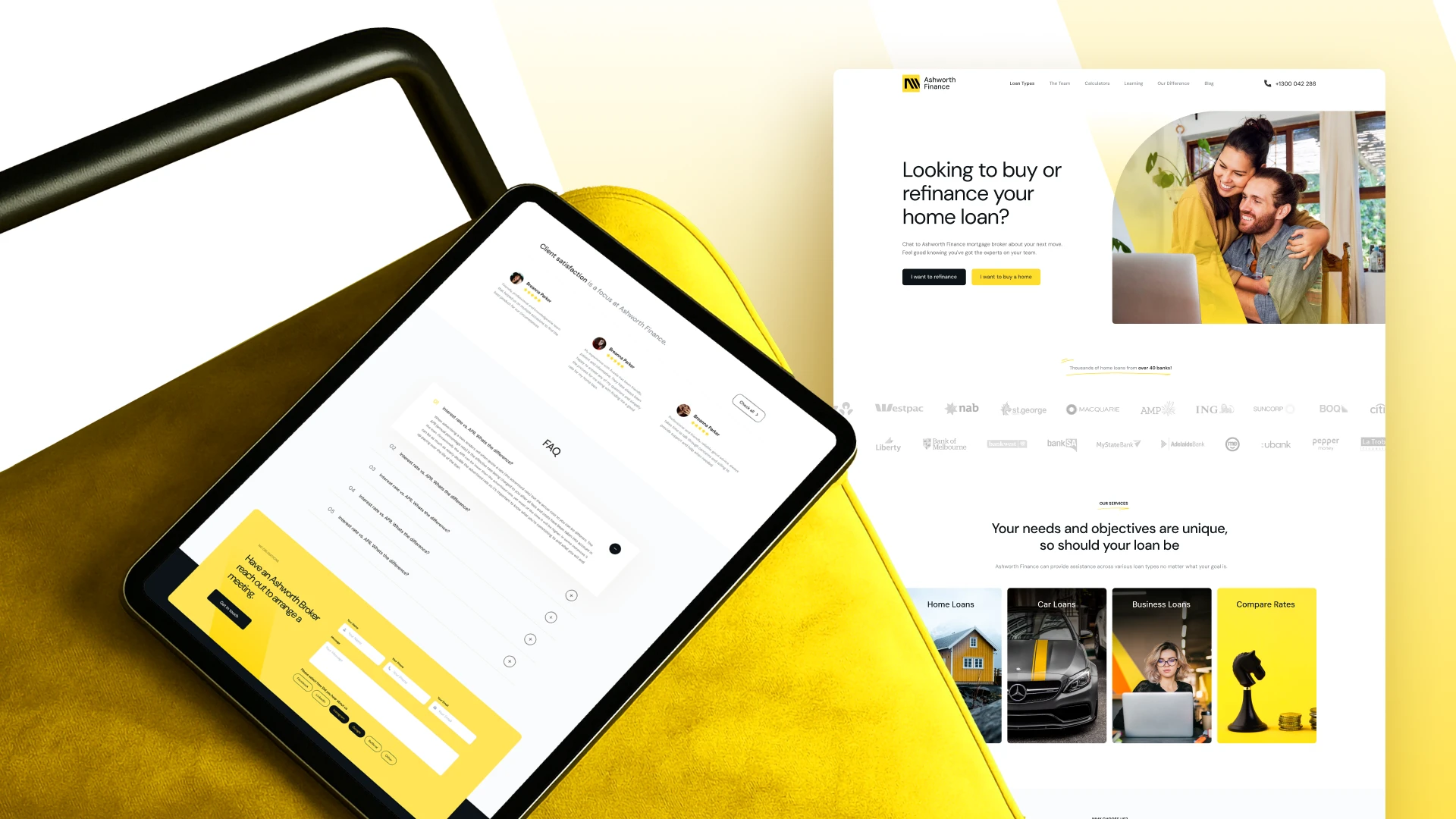 Ashworth Finance is an Australian mortgage brokerage that connects clients with home, car, and business loans across 40+ partner banks.