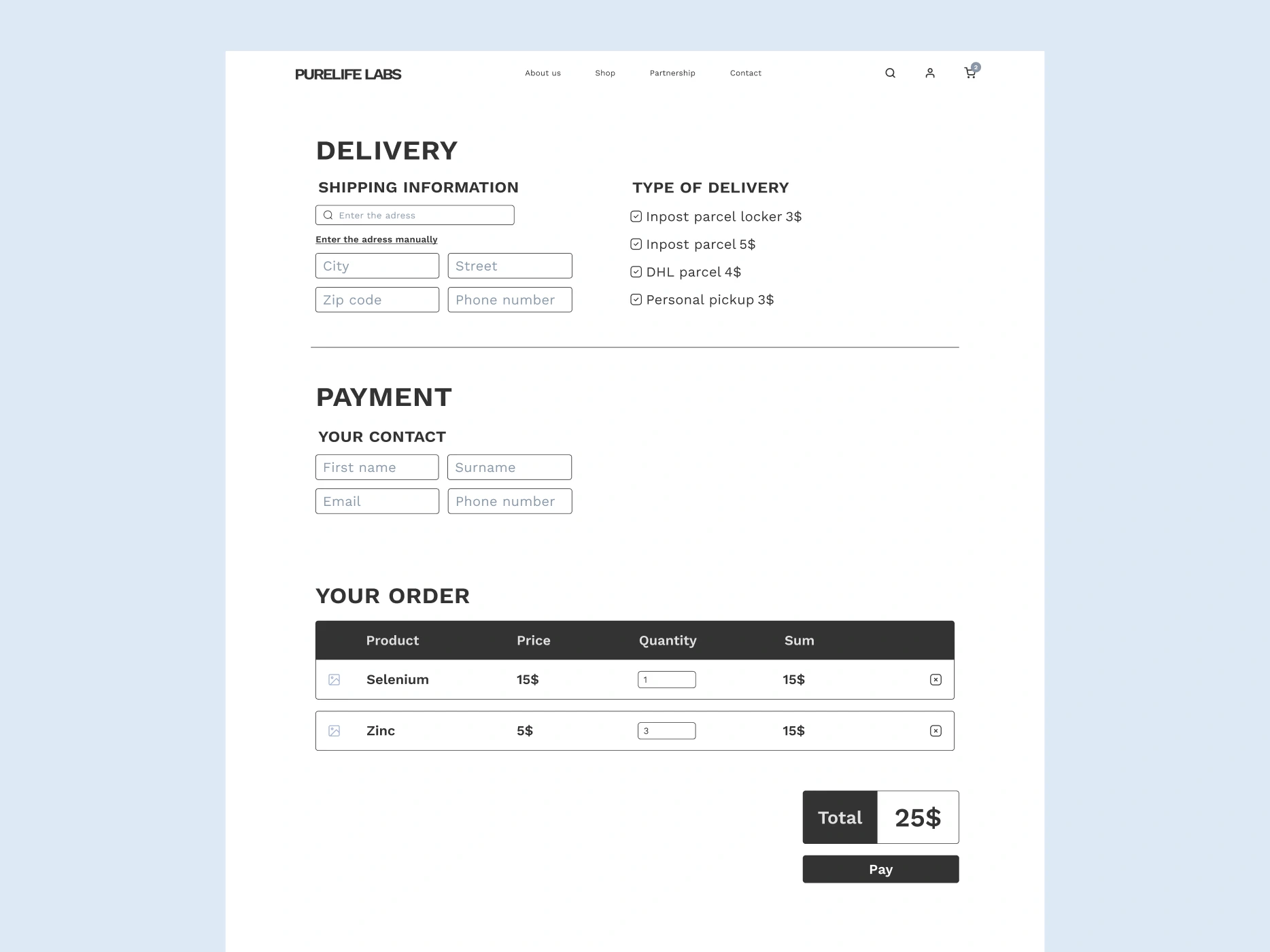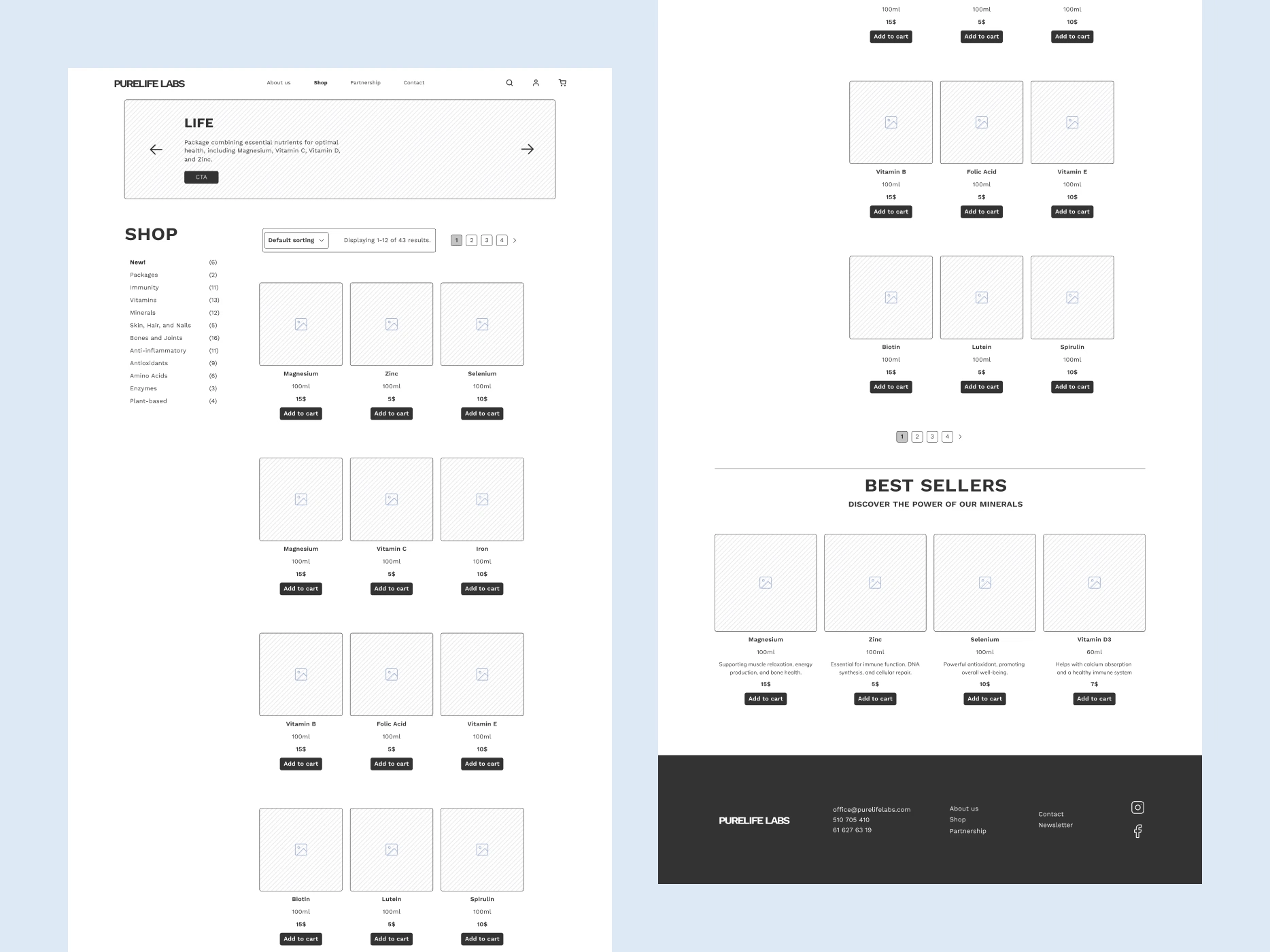 Purelife Labs came to me with UX issues in their store. After my review and feedback, they asked me to create wireframes for their in-house implementation.