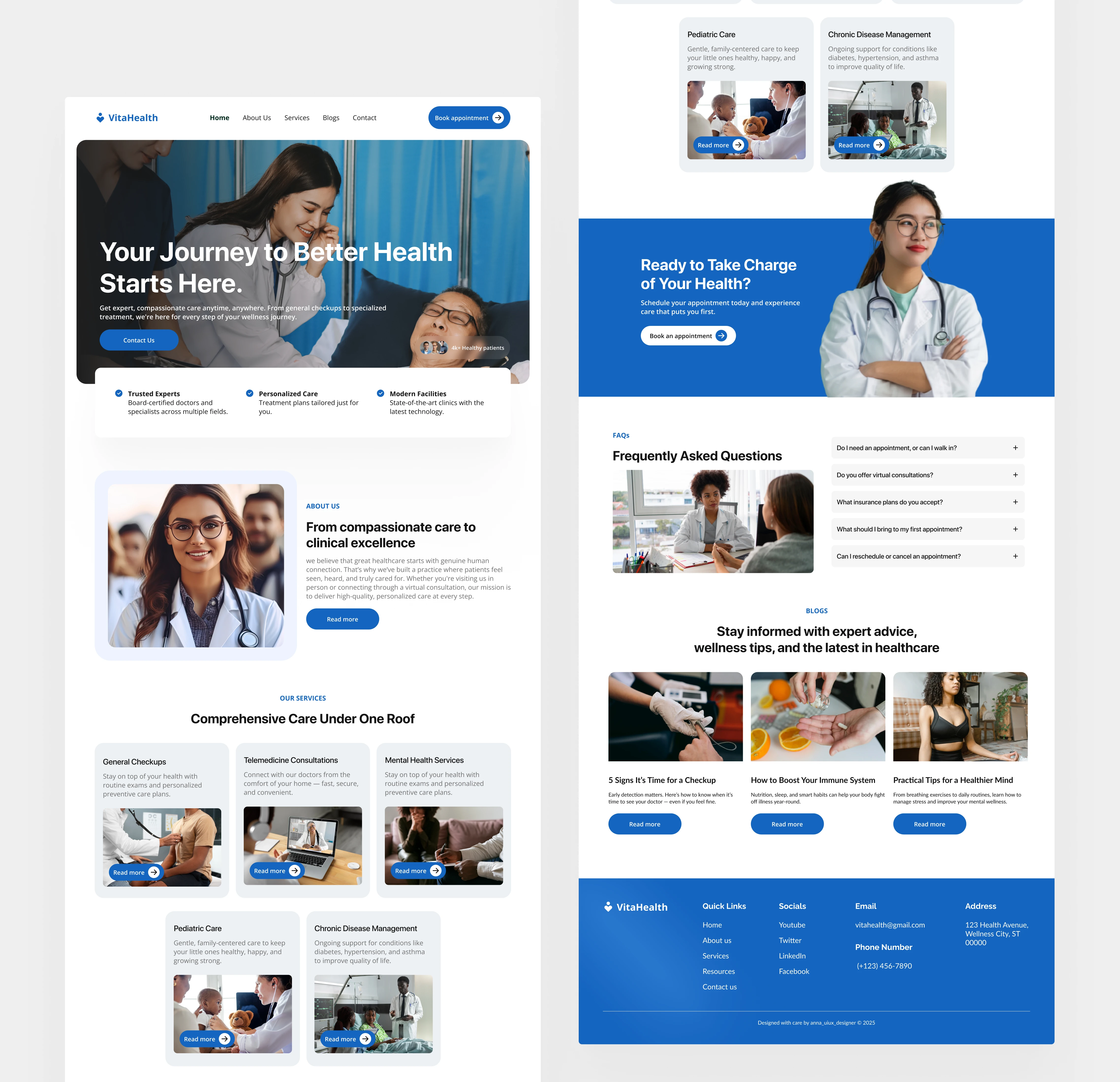 VitaHealth is a conceptual healthcare landing page built to enhance trust, drive patient engagement, and communicate care through design.