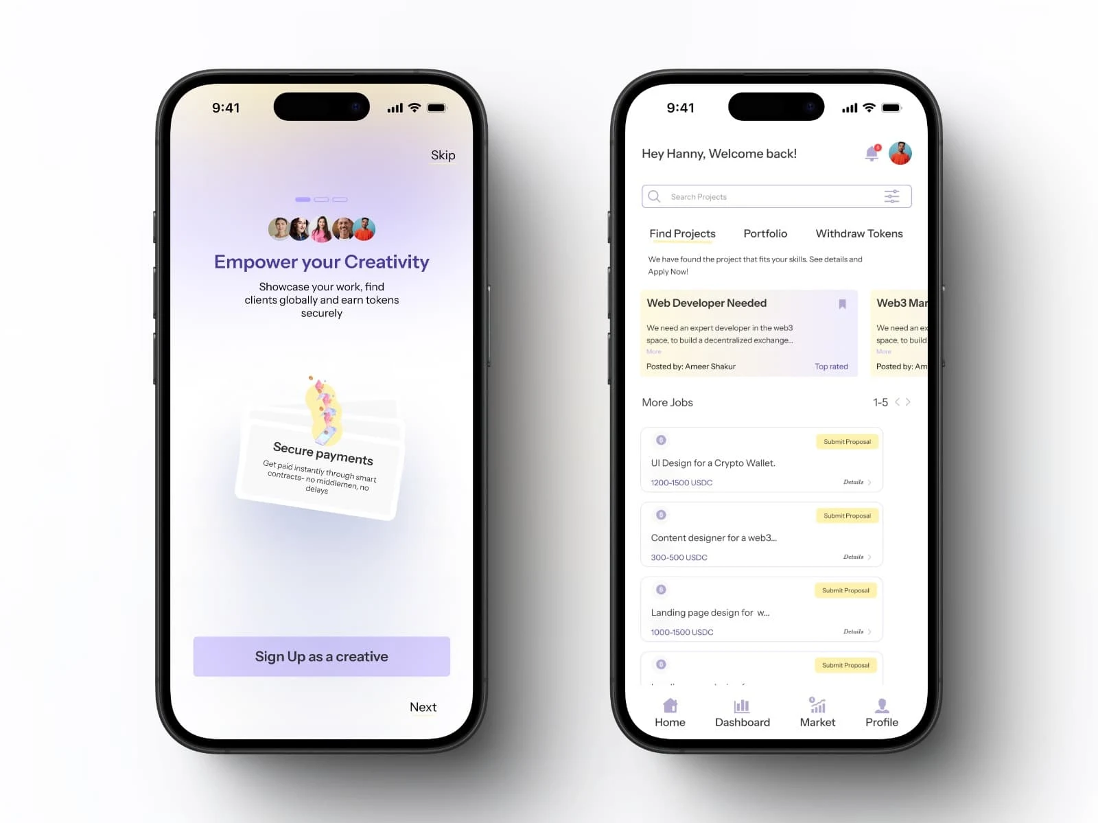 Designed a Web3 talent market place for freelancers and companies hiring.
