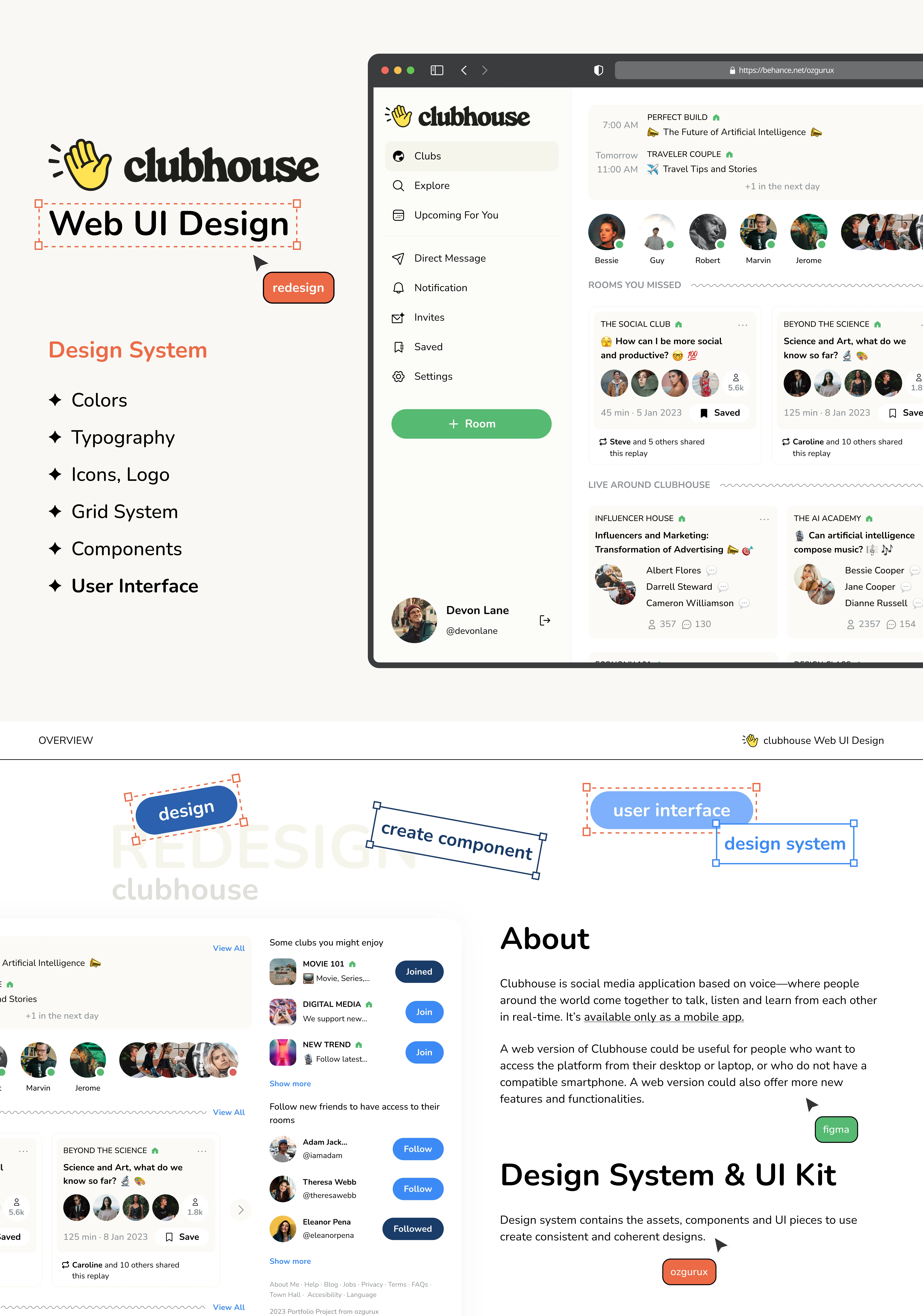 Created a web-based user interface design for Clubhouse, the popular voice-based social media platform known as a mobile app.