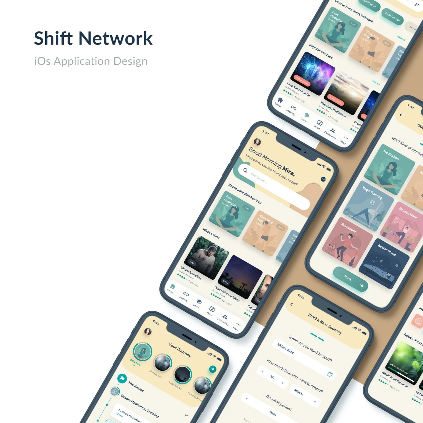 The Shift Network is a mindfulness and personal-growth app offering guided sessions, courses, and therapeutic practices. The challenge: build a UI that feels instantly calming while remaining intuitive for users of all skill levels. My design made it to the Finalist stage.