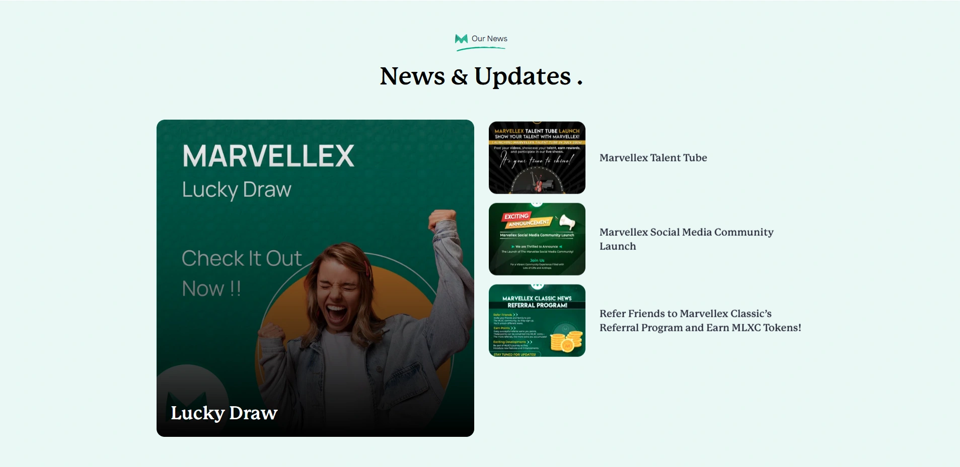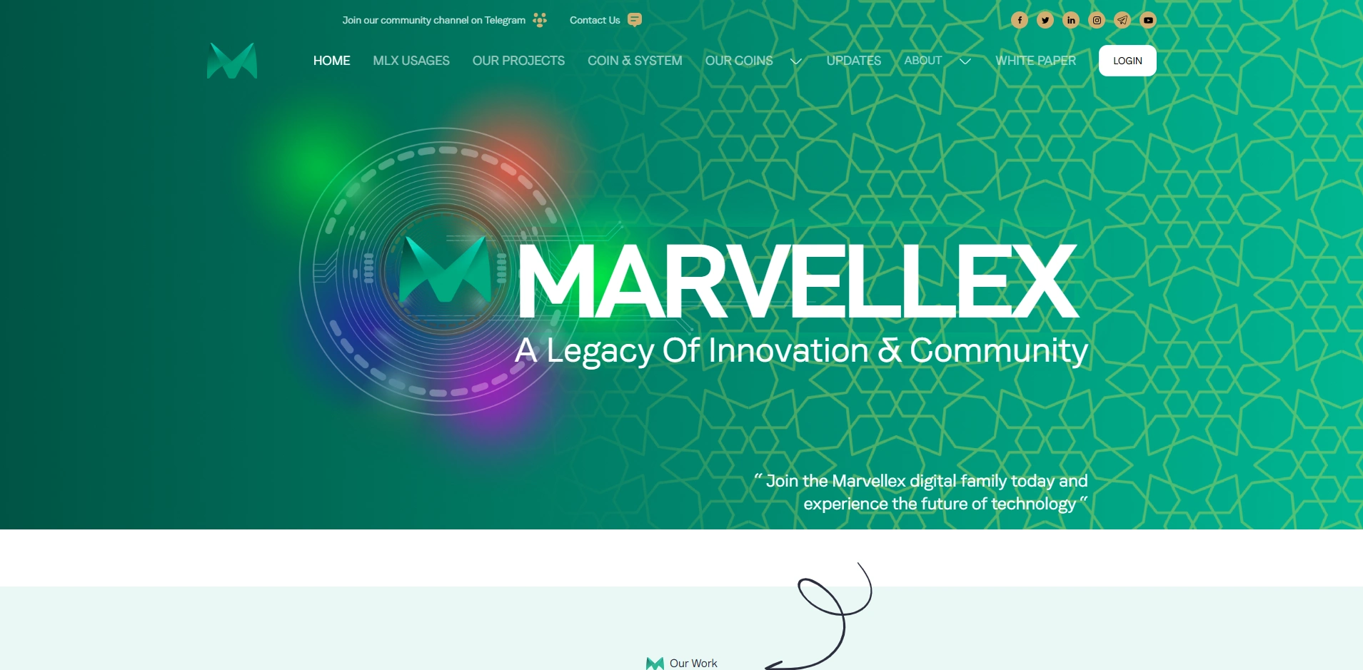 Marvellex presents itself as a blockchain ecosystem aiming to make value creation and exchange “secure, efficient, and economical,” positioning blockchain as the backbone of digital economies and tackling adoption issues like volatility and usability. Its public site highlights community programs, listings news, and an all-in-one “digital family” experience.
