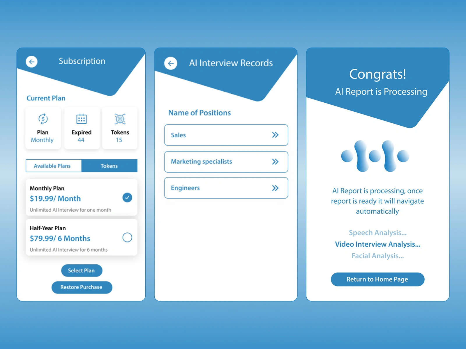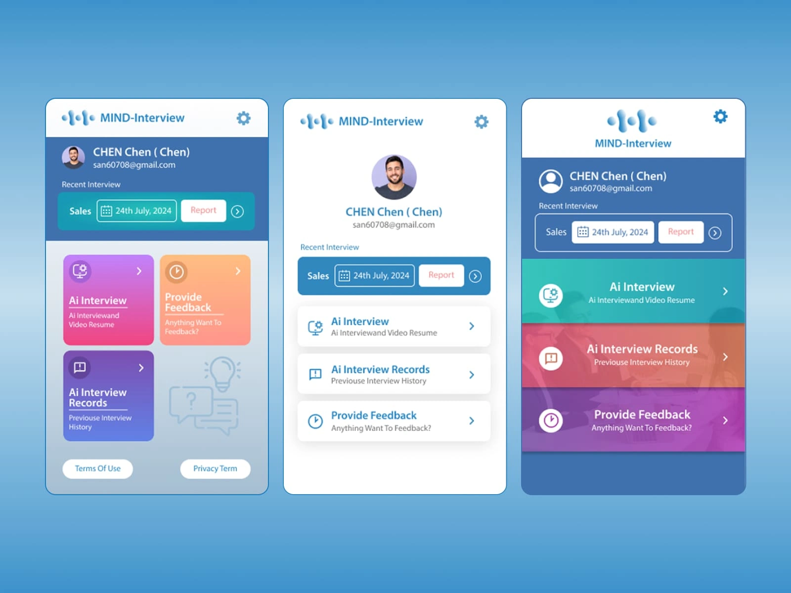 Designed mobile UI for Mind Interview, an AI-based platform offering mock interviews, real-time feedback, and performance tracking with smooth UX.