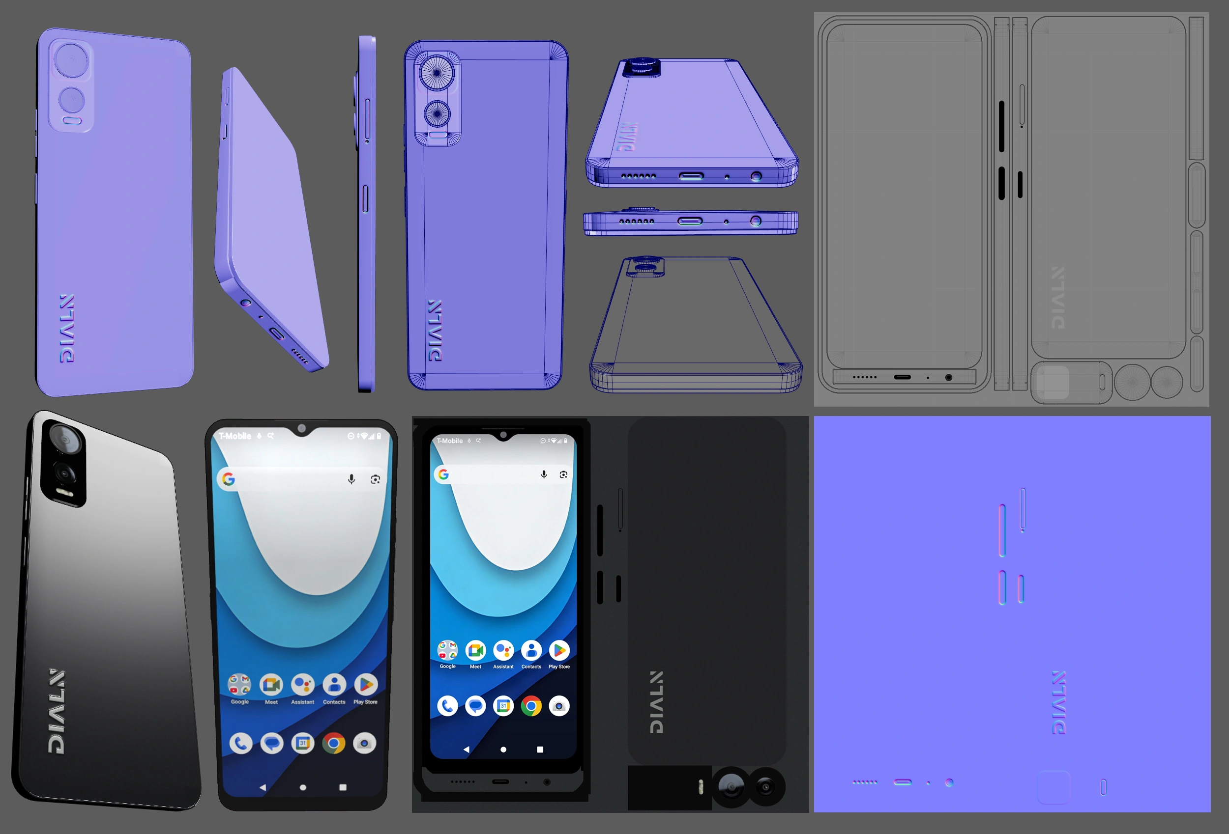 Because this asset needed to perform well on the web, I built it with very light geometry, simple materials, and small texture maps. The heaviest element in the final experience is the looping screen video, which was necessary to give the phone a branded, animated screen presence without making the overall asset too heavy.