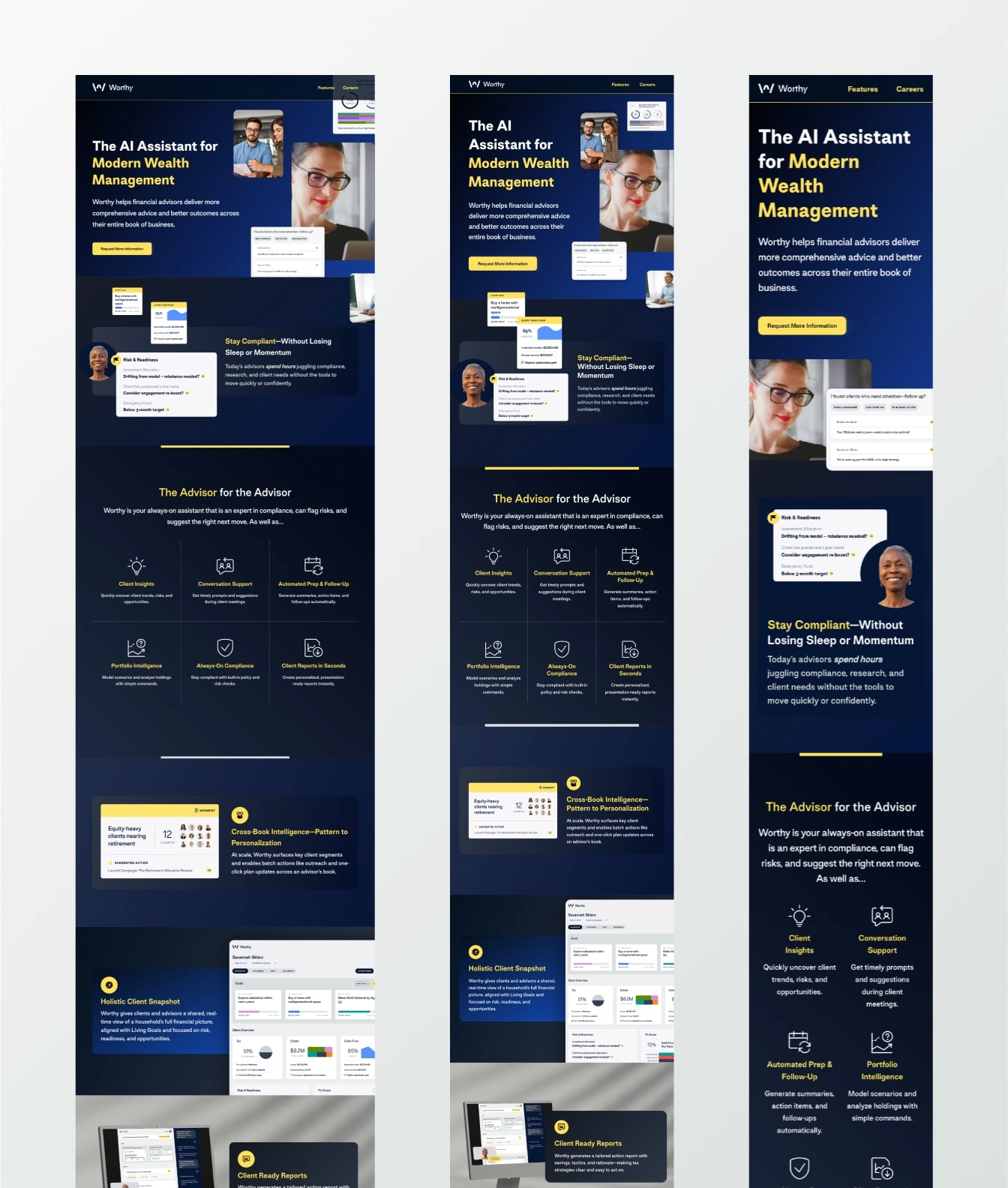 Designed a compelling and modern SaaS landing page that marries AI capabilities with human aspiration. Turned around in 3 weeks and worked closely with client.