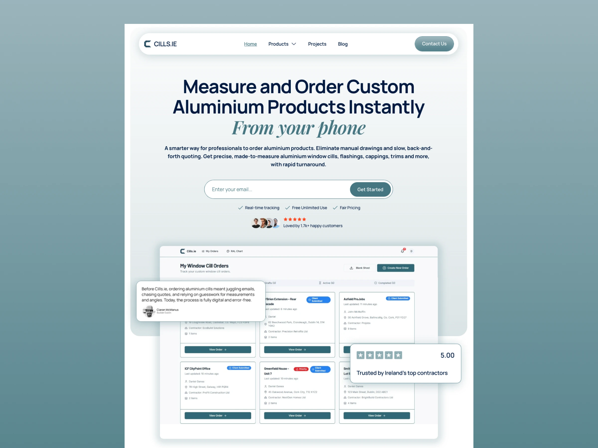 Cills.ie is Ireland's digital ordering platform for custom aluminium window cills, flashings, cappings, trims, and architectural aluminium products — measurable and orderable instantly from your phone