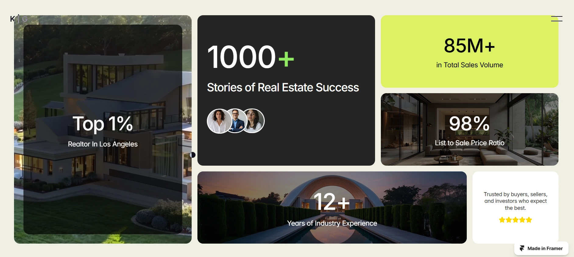 I designed Kelvin Garry website template in Framer to give realtors a powerful digital presence that feels custom but is ready to launch in hours.
