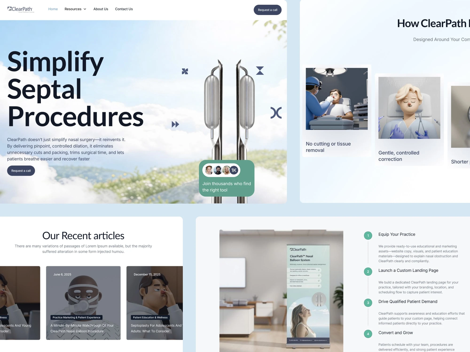 ClearPath Nasal Balloon System, a minimally invasive solution designed to simplify nasal surgery. ClearPath Nasal Balloon System Healthcare Website Redesign.